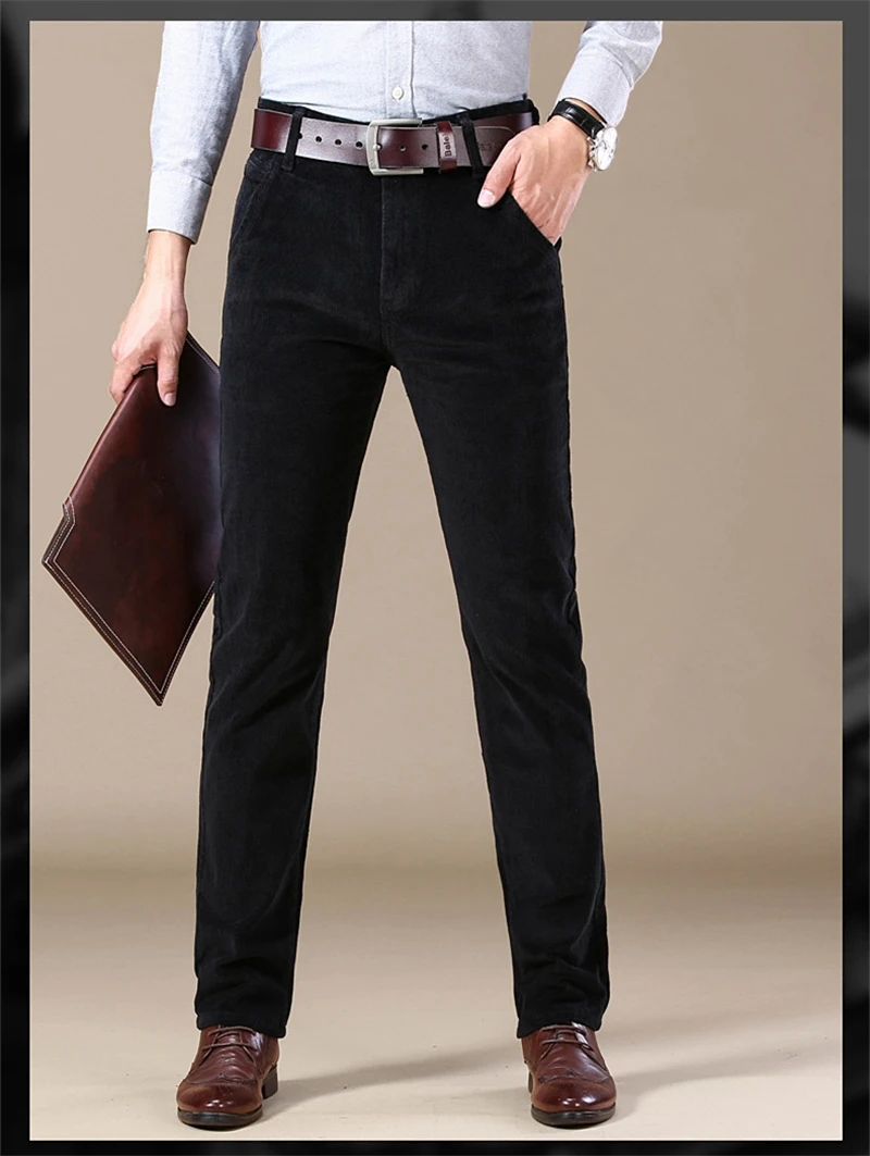 2023 Winter Men's Corduroy Casual Pants Business Fashion Solid Color Elastic Regular Fit Trousers Male Black Khaki Coffee Blue