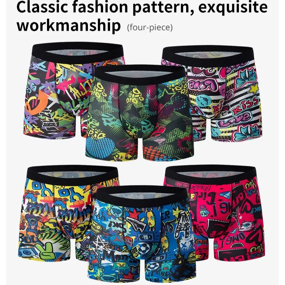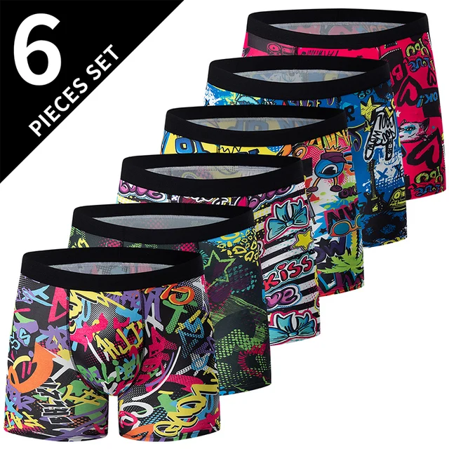 6-piece Men’s Fashion Graffiti Printed Long Boyshort Underwear Comfortable And Breathable Teenagers