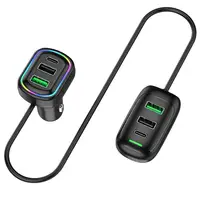 6-Ports Car Charger USB Type-C Front And Rear Extension With RGB Light PD Fast Charging Power Adapter