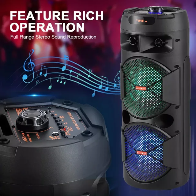 Be the first to review “6000W Bluetooth Speaker with Subwoofer Dual 8” Woofer Portable Wireless Speaker, Colorful LED Lights,”
