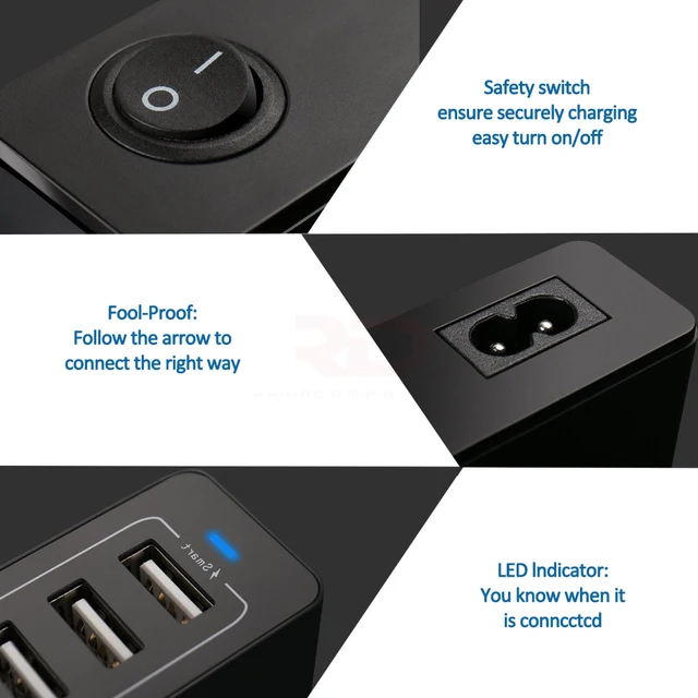 1. This product provides 10 USB output ports, which can charge ten devices at the same time, charge for iPad, for iPhone, for iPod (including for iPod shuffle, for iPod Touch, for iPod Nano and other for Apple products) and for Samsung tablet, and even other USB Charging supports MP3, MP4, mobile phones, digital cameras, game consoles, GPS, digital photo frames, headsets and other digital devices. In long-term use, the output current is guaranteed to reach 12A, and the quality is absolutely satisfactory. It is a USB charger that you can trust and use with confidence.