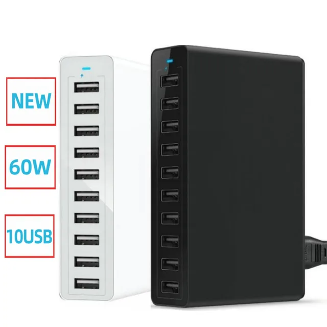 60W 10Port USB Charger for iPhone iPad Kindle Samsung Xiaomi Charging Station Dock Multi USB Charger Desktop Mobile Phone Charge