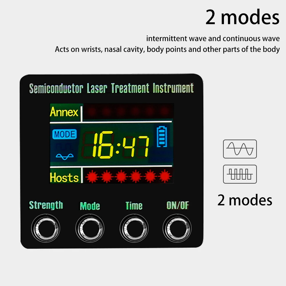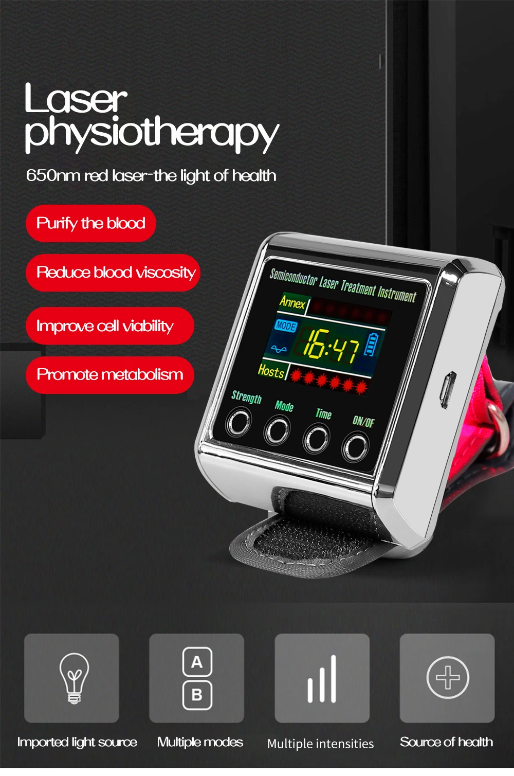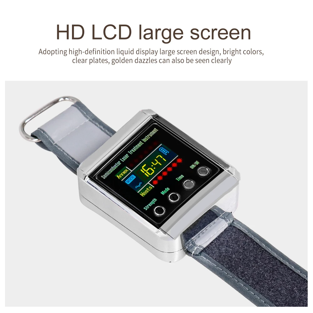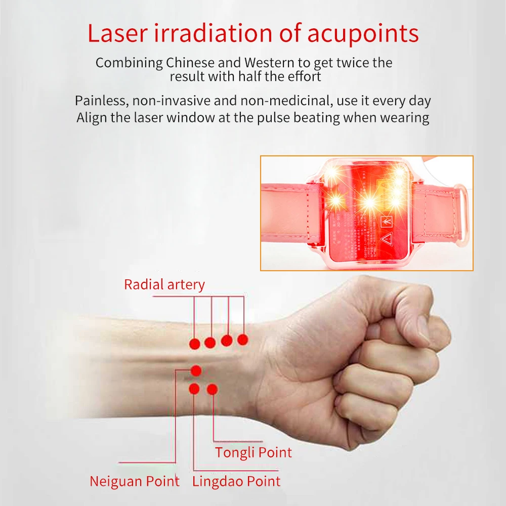 The LLLT Watch is slightly larger than a wristwatch and it is applied to the wrist, where simultaneous and continuous acupuncture points or blood irradiation using laser light can be performed.