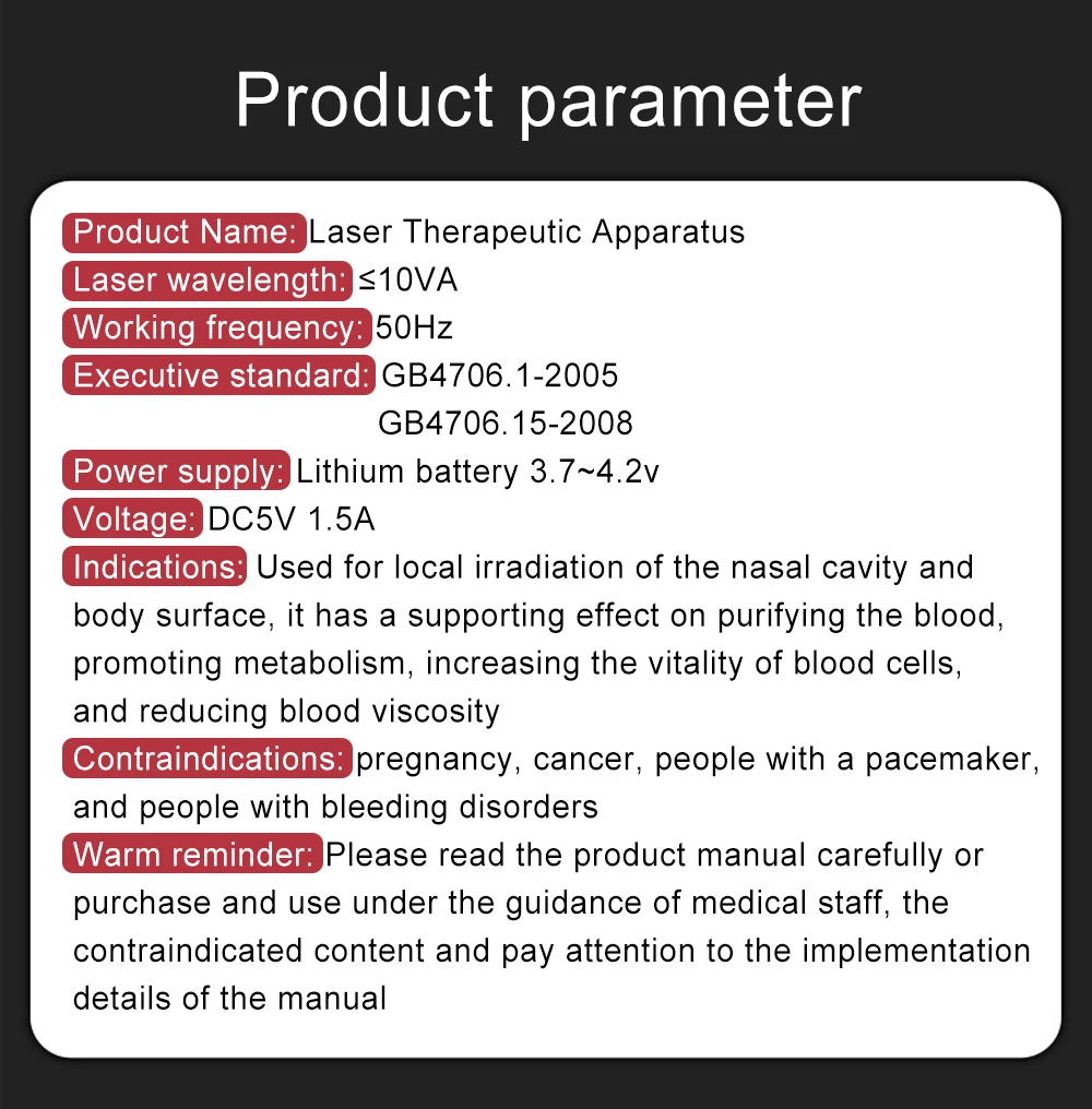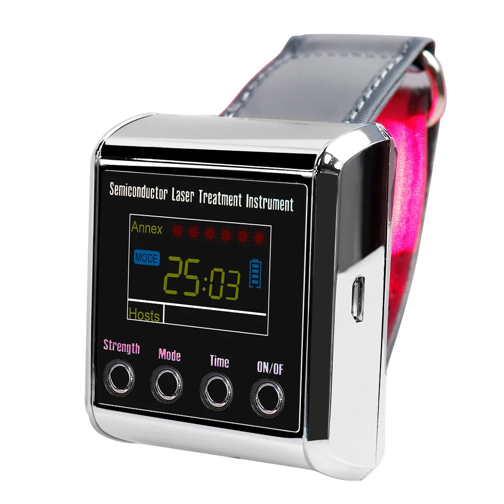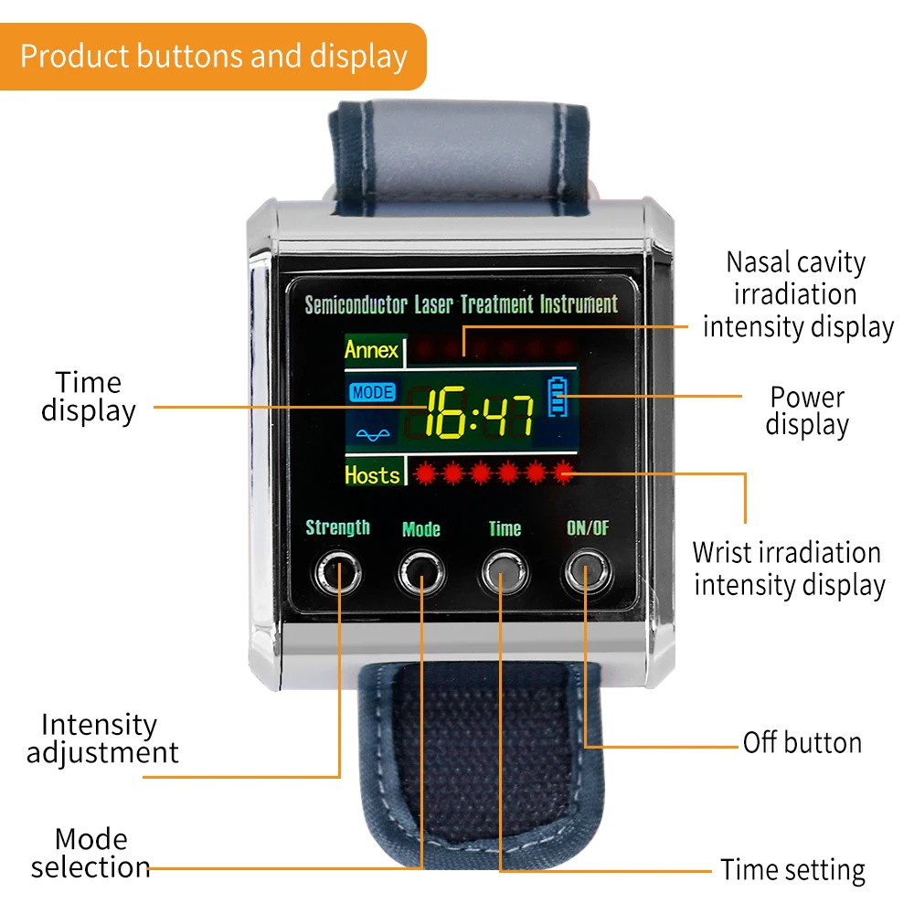 The laser watch can also irradiate the inner area of the nose using the included Nasal applicator.