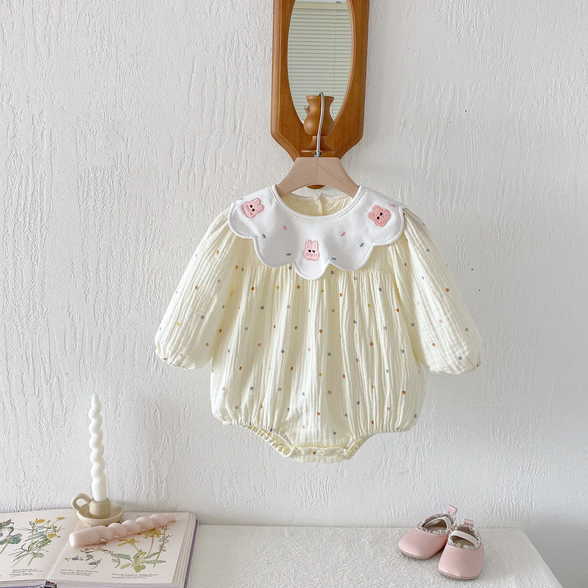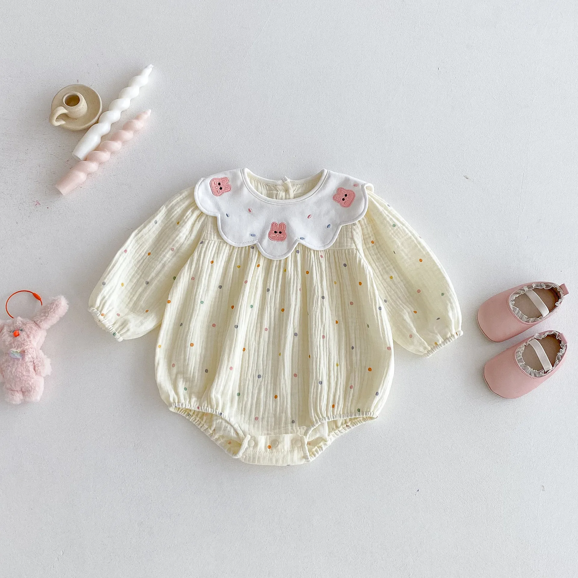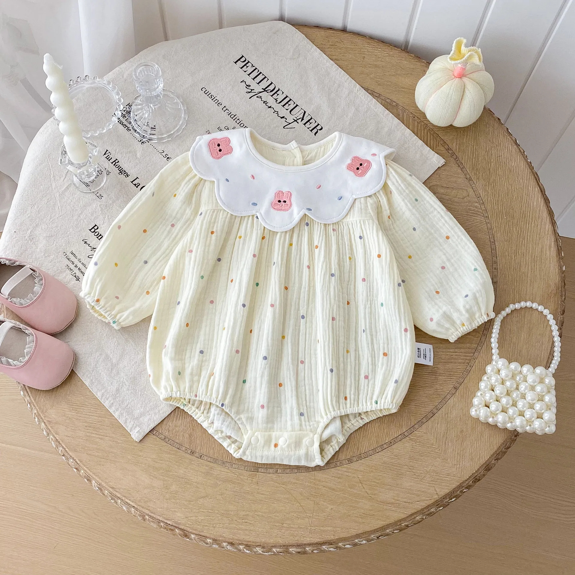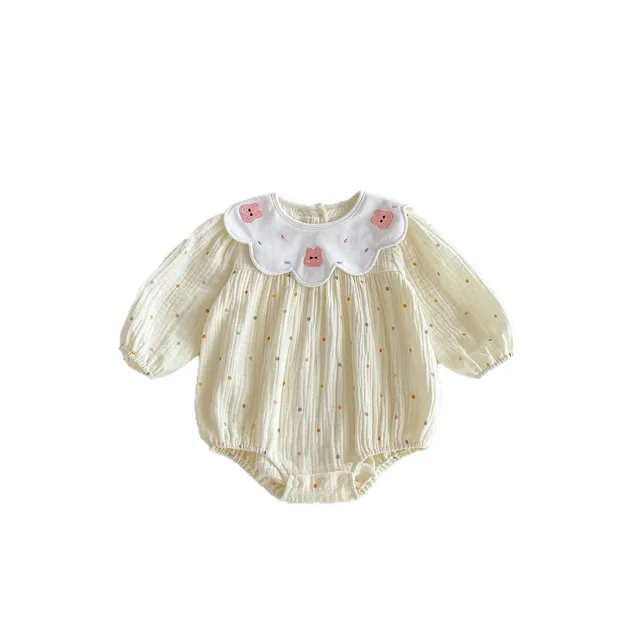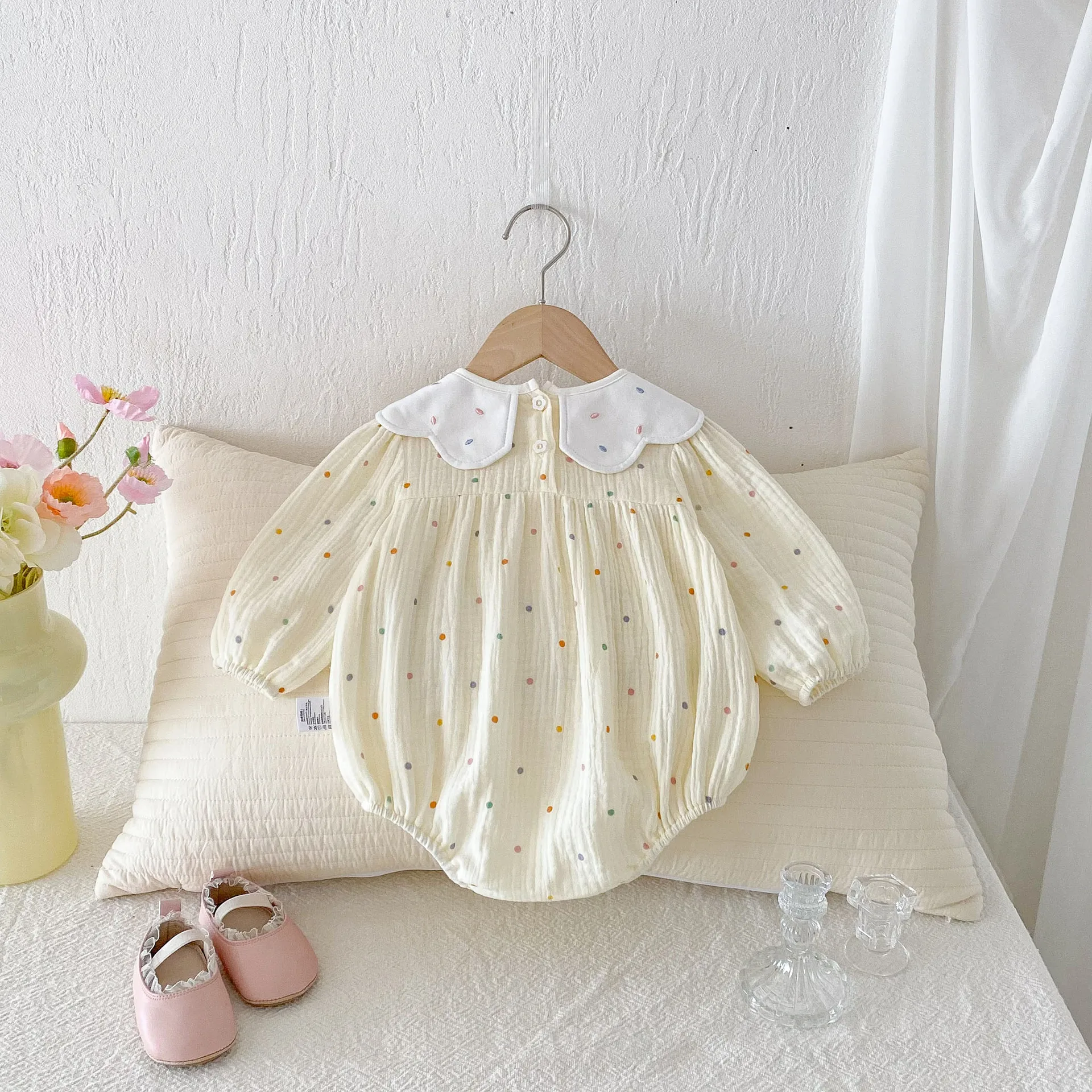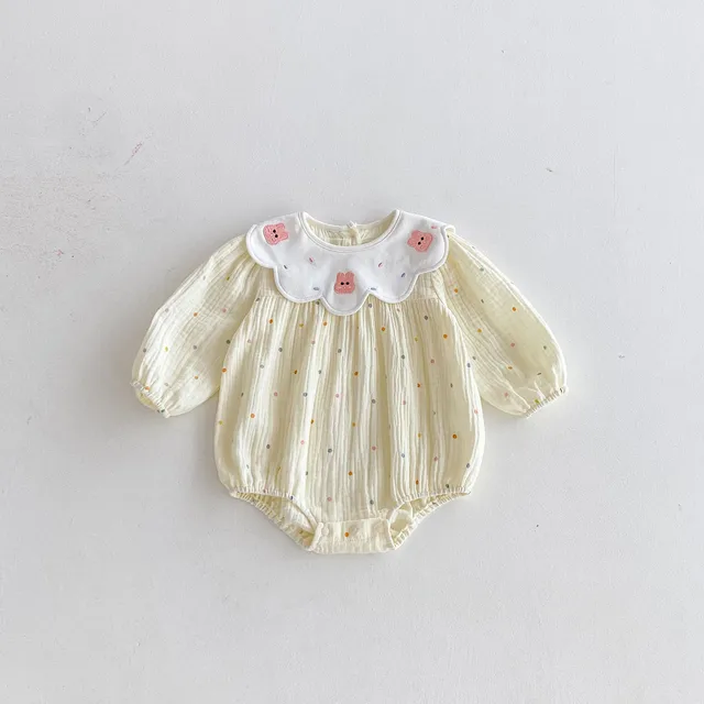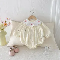 Korean Style 0-2Y Autumn Baby Girls Clothes Pure Cotton Infant Girls Rompers Floral Jumpsuits Peter Pan Collar Baby Outfit