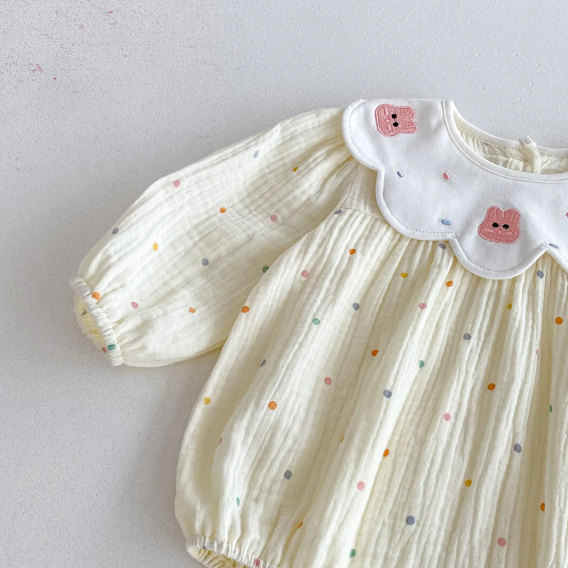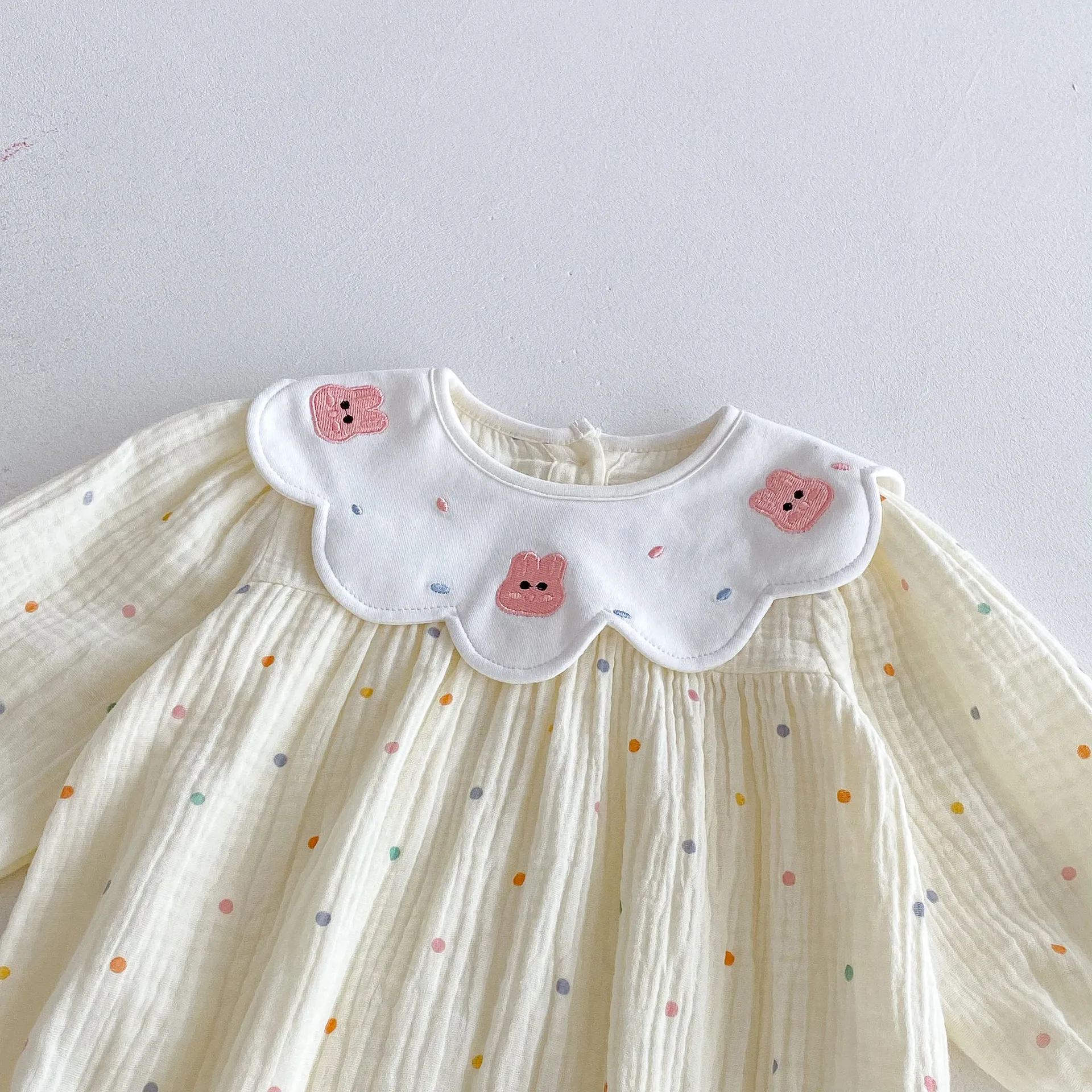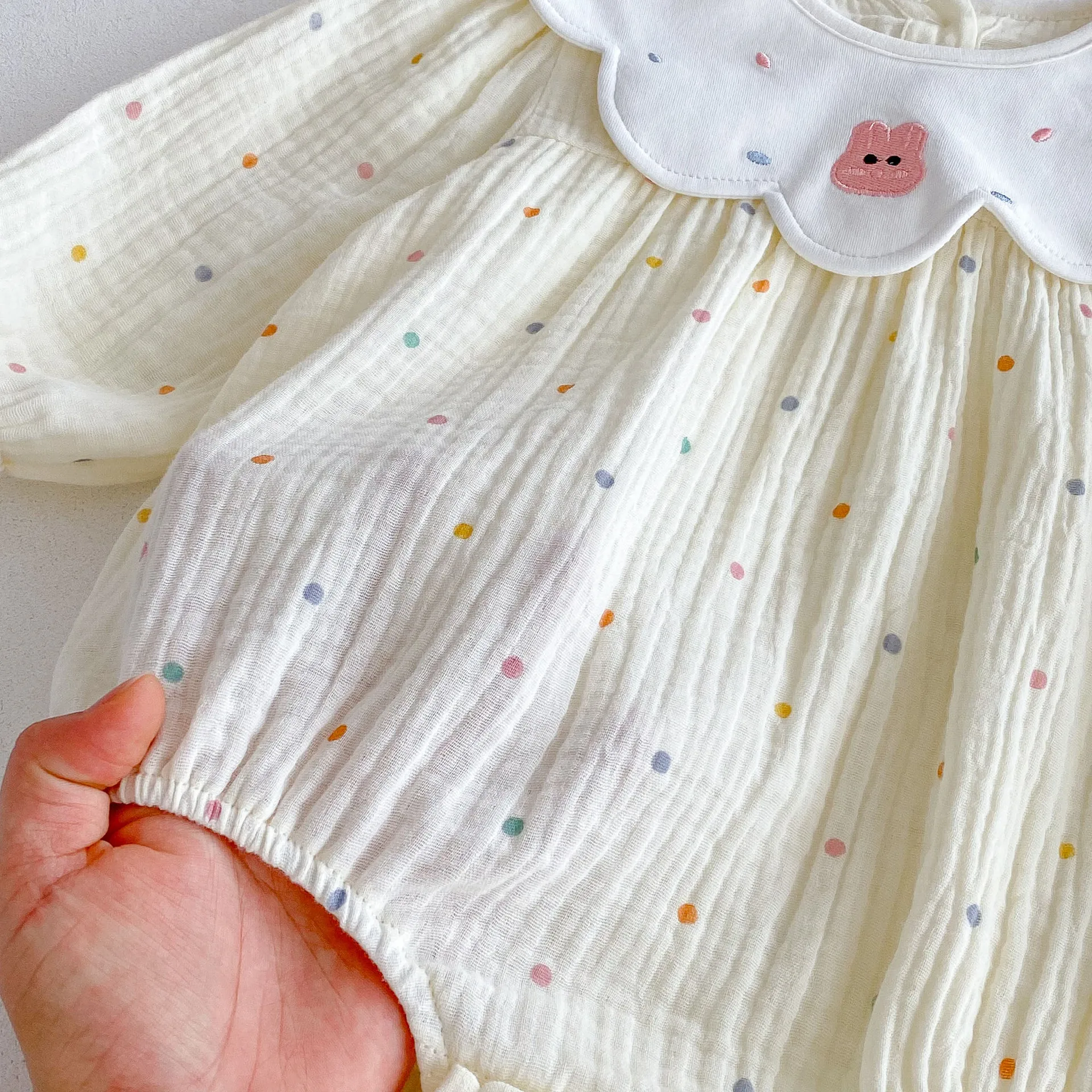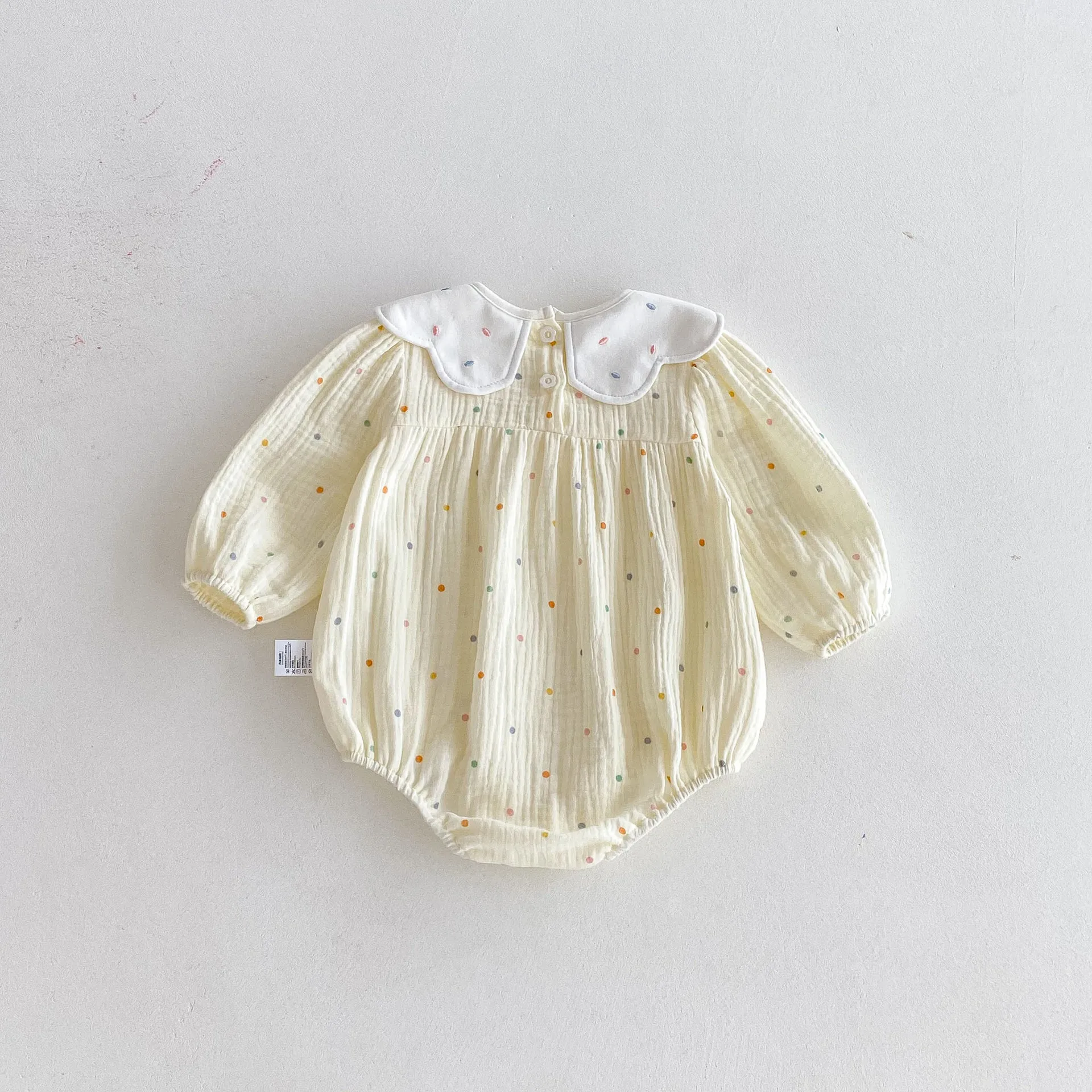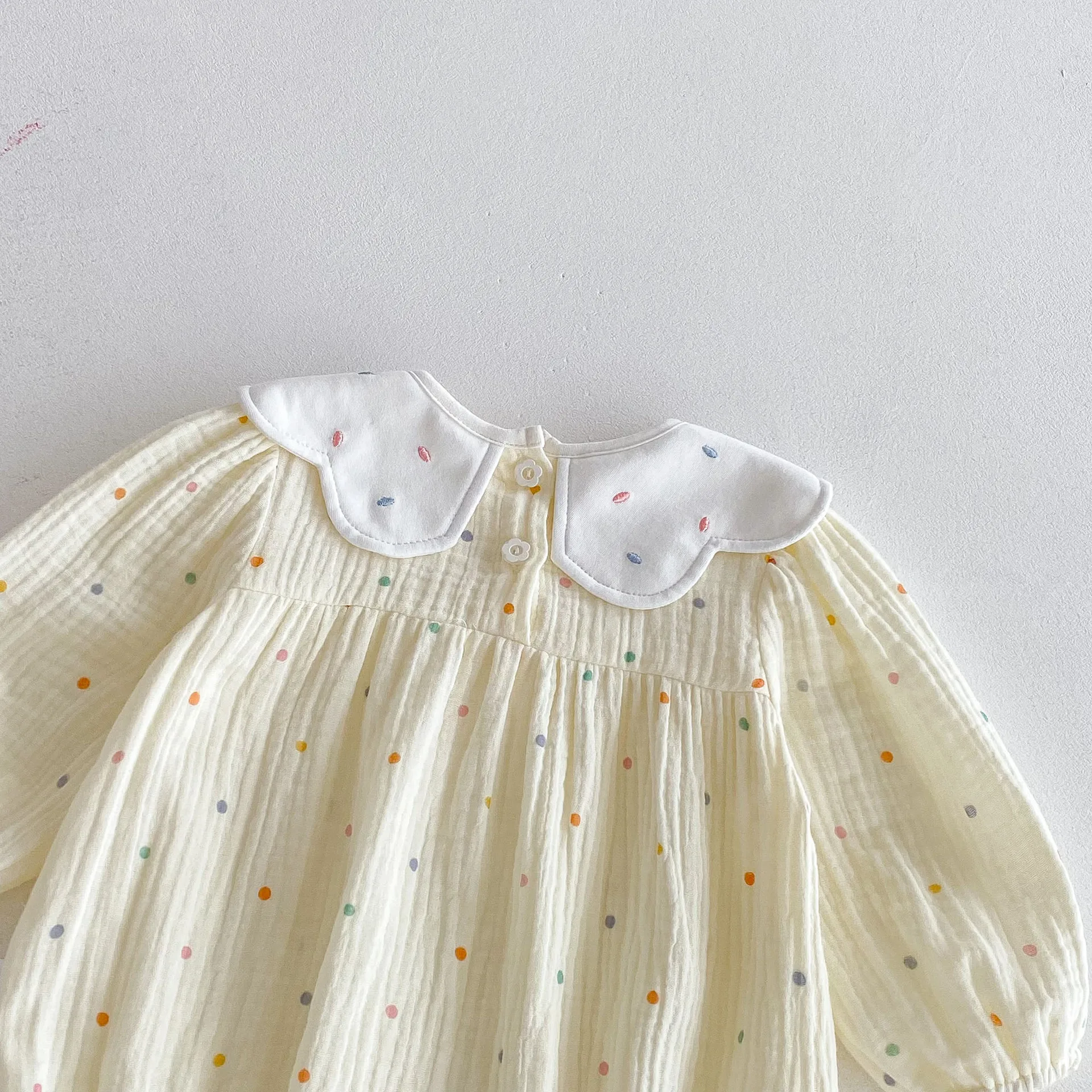 Korean Style 0-2Y Autumn Baby Girls Clothes Pure Cotton Infant Girls Rompers Floral Jumpsuits Peter Pan Collar Baby Outfit