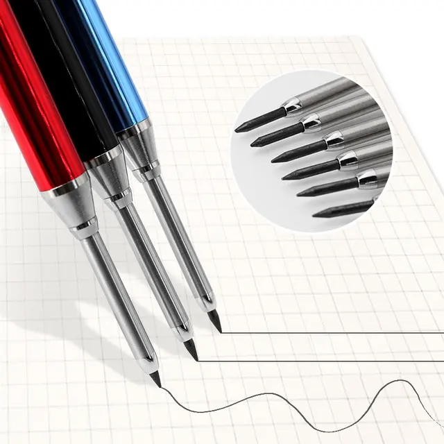 6Colors 2.8mm Metal Solid Carpenter Mechanical Pencil with Sharpener 2B Lead Core Deep Hole Construction