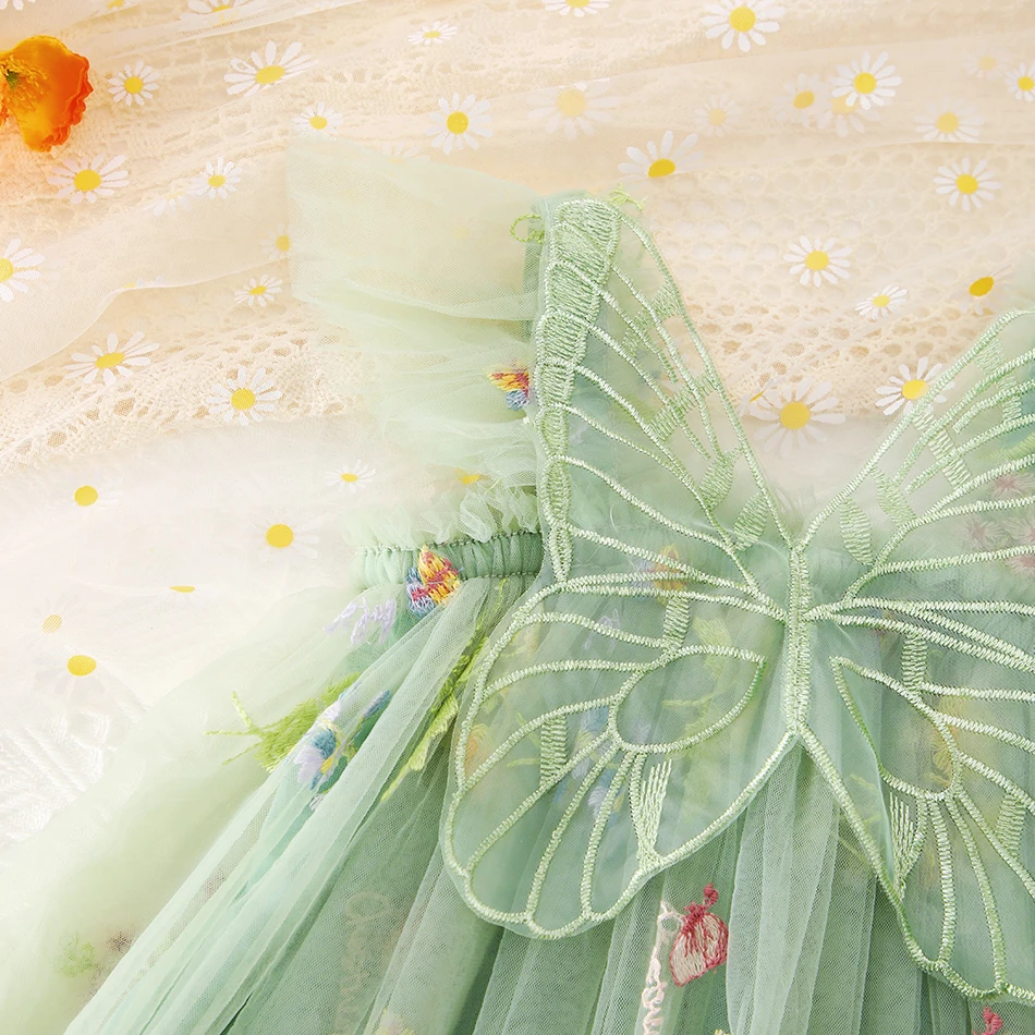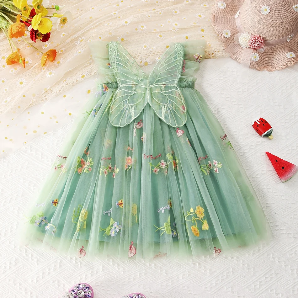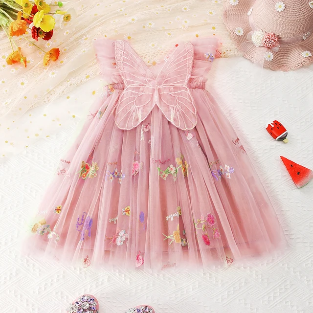 Girls Purple Butterfly Fairy Dress Baby Glitter Tulle Tutus Flower Dress with Wing and Hairbow Kids Party Costume Sequin Dresses