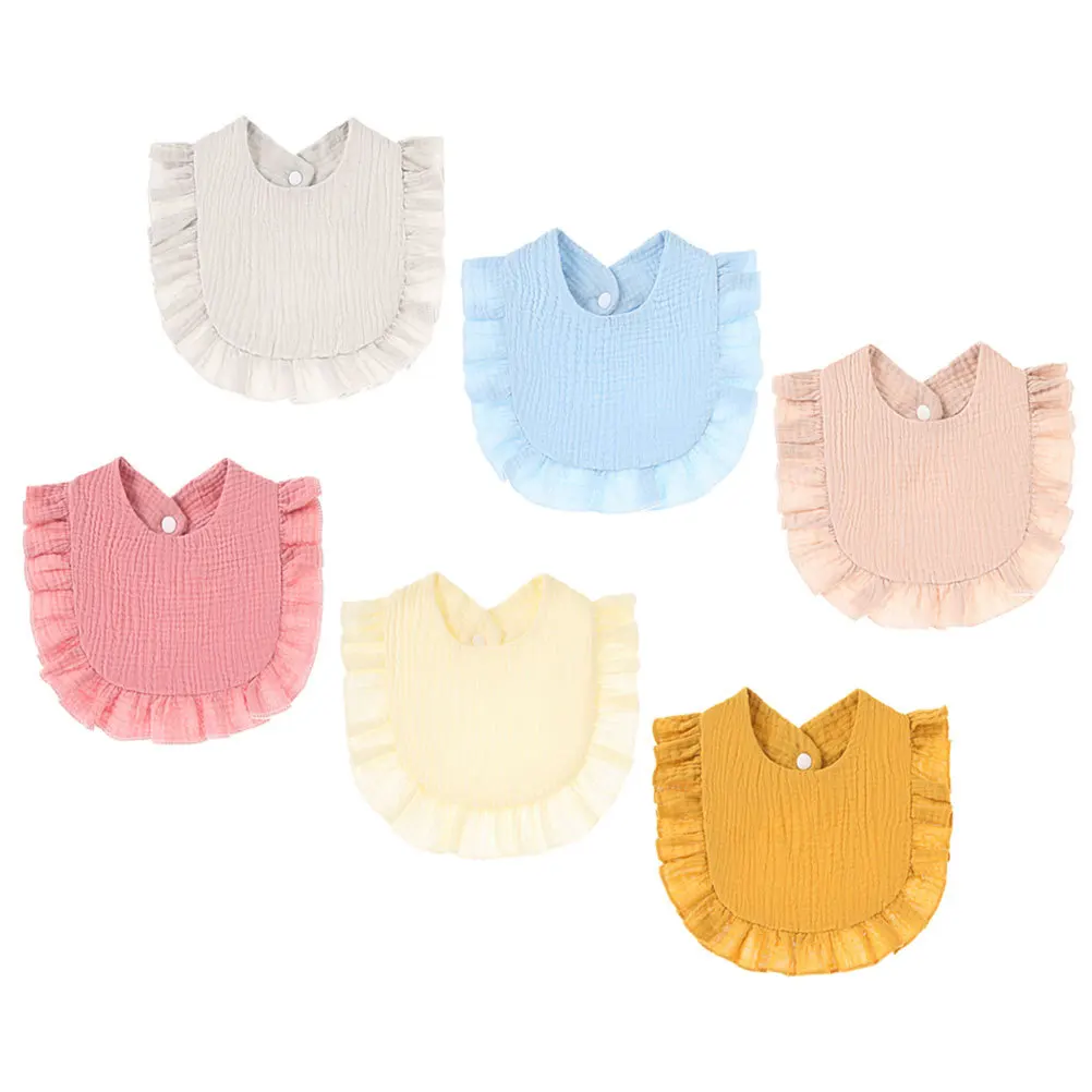 6Pcs Baby Bibs Cotton Teething Drooling Feeding Soft Reusable Washable Breathable Absorbent Practical Safe Button
