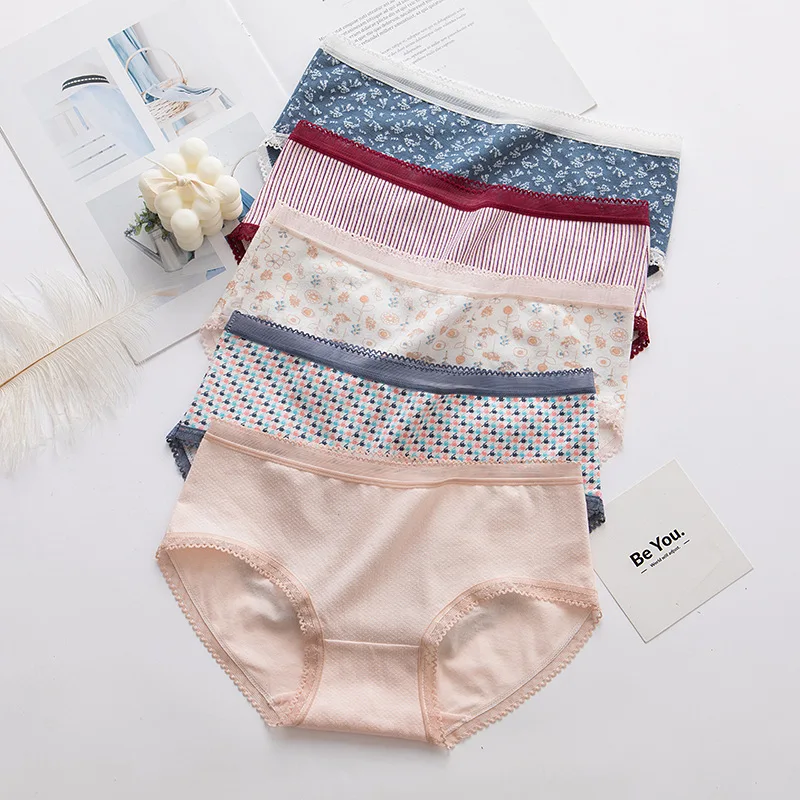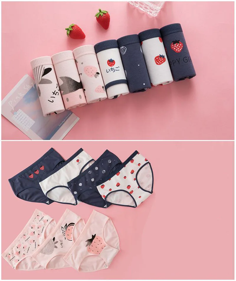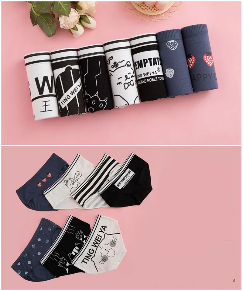 7 Pcs/Lot Cotton Panties Women Underwear Print Briefs Underpants Girls Cute Pantys Seamless Intimates Strip Sexy Lingerie Ladies