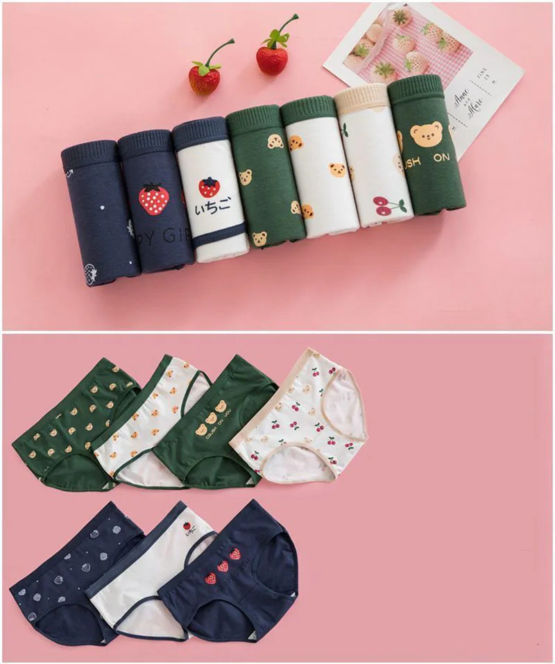 7 Pcs/Lot Cotton Panties Women Underwear Print Briefs Underpants Girls Cute Pantys Seamless Intimates