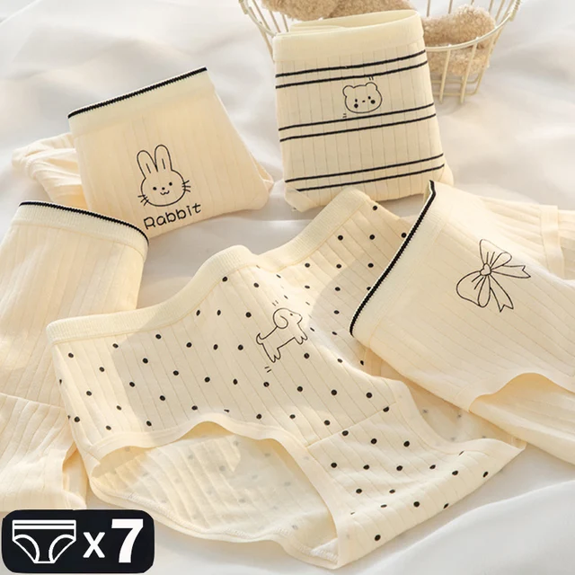 7 Pcs/Set Women’s Cotton Panties Print Breathable Briefs Girls Soft Panty Underwear Female Intimates