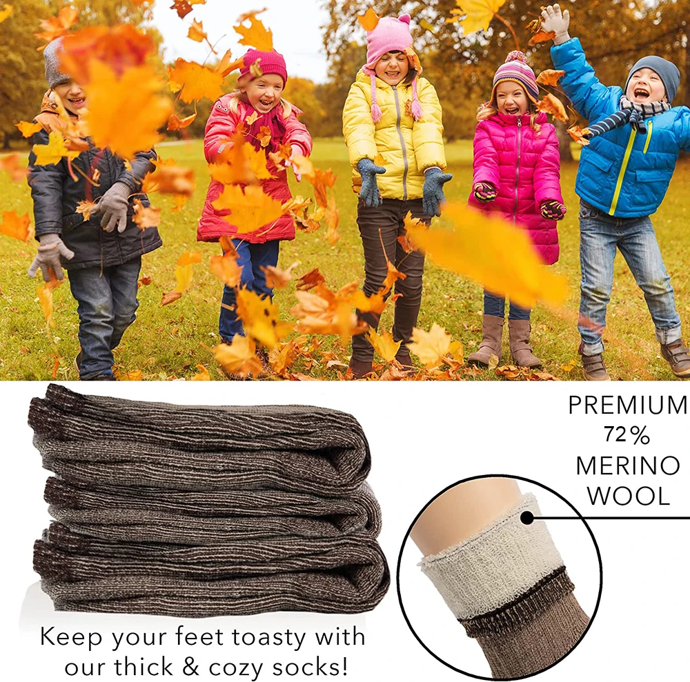 1.SOFT & COZY KID-FRIENDLY COMFORT: 72% Merino wool+ 25% nylon +3% Spandex. Our boys and girls hiking socks provide compression, arch support, and a reinforced heel and toe to ensure maximum comfort and protection.