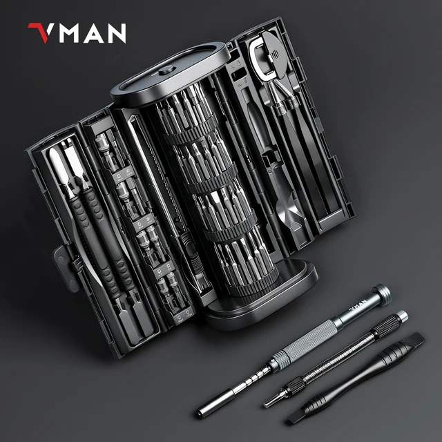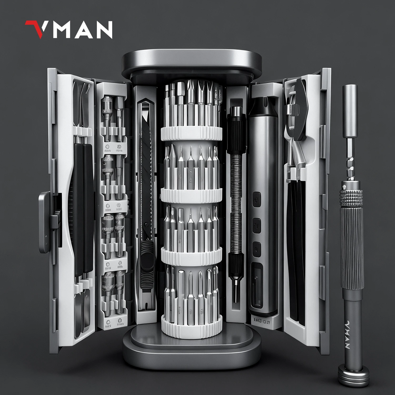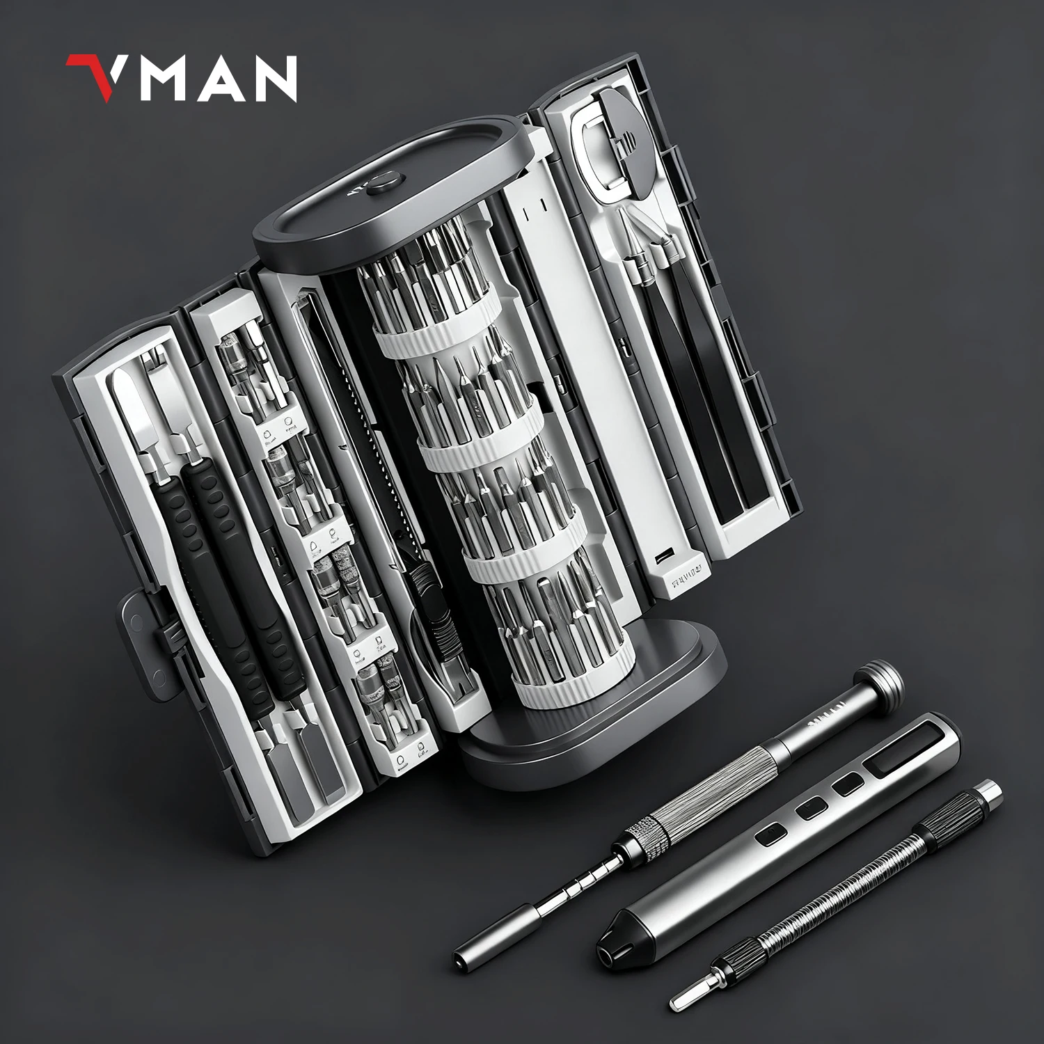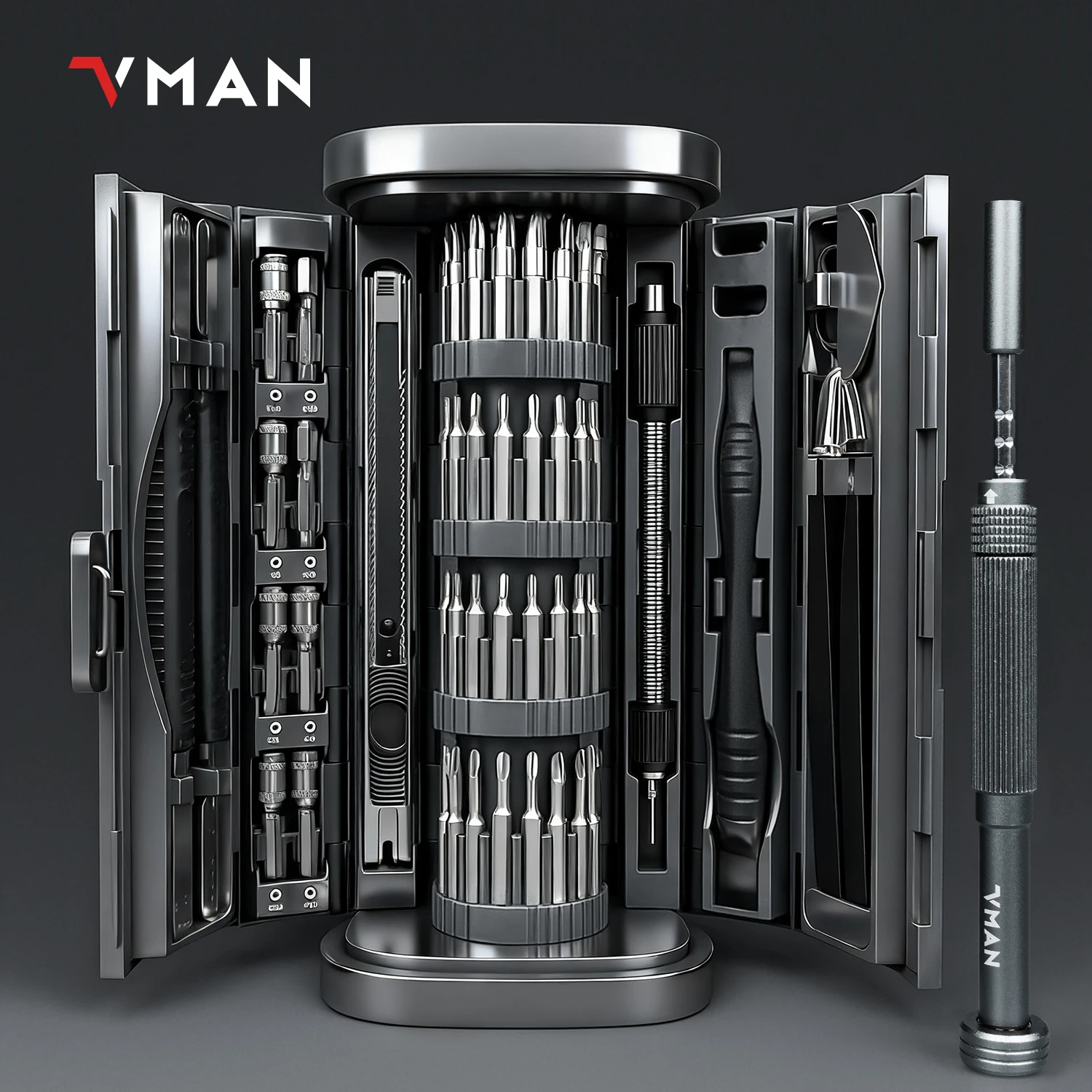 The VMAN 72-in-1 Precision Screwdriver Set is available in two versions: one with an electric handle and the other with a non-electric handle. Featuring CR-V steel bits, it is suitable for repairing various precision items ranging from digital products to small machinery, and serves as a powerful tool for professional precision repair and daily fine DIY work.