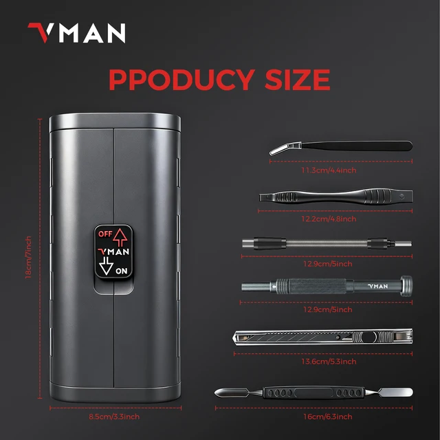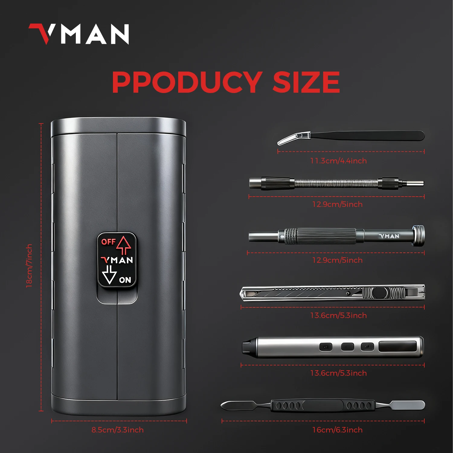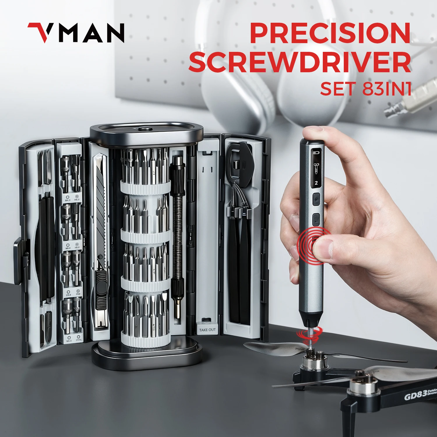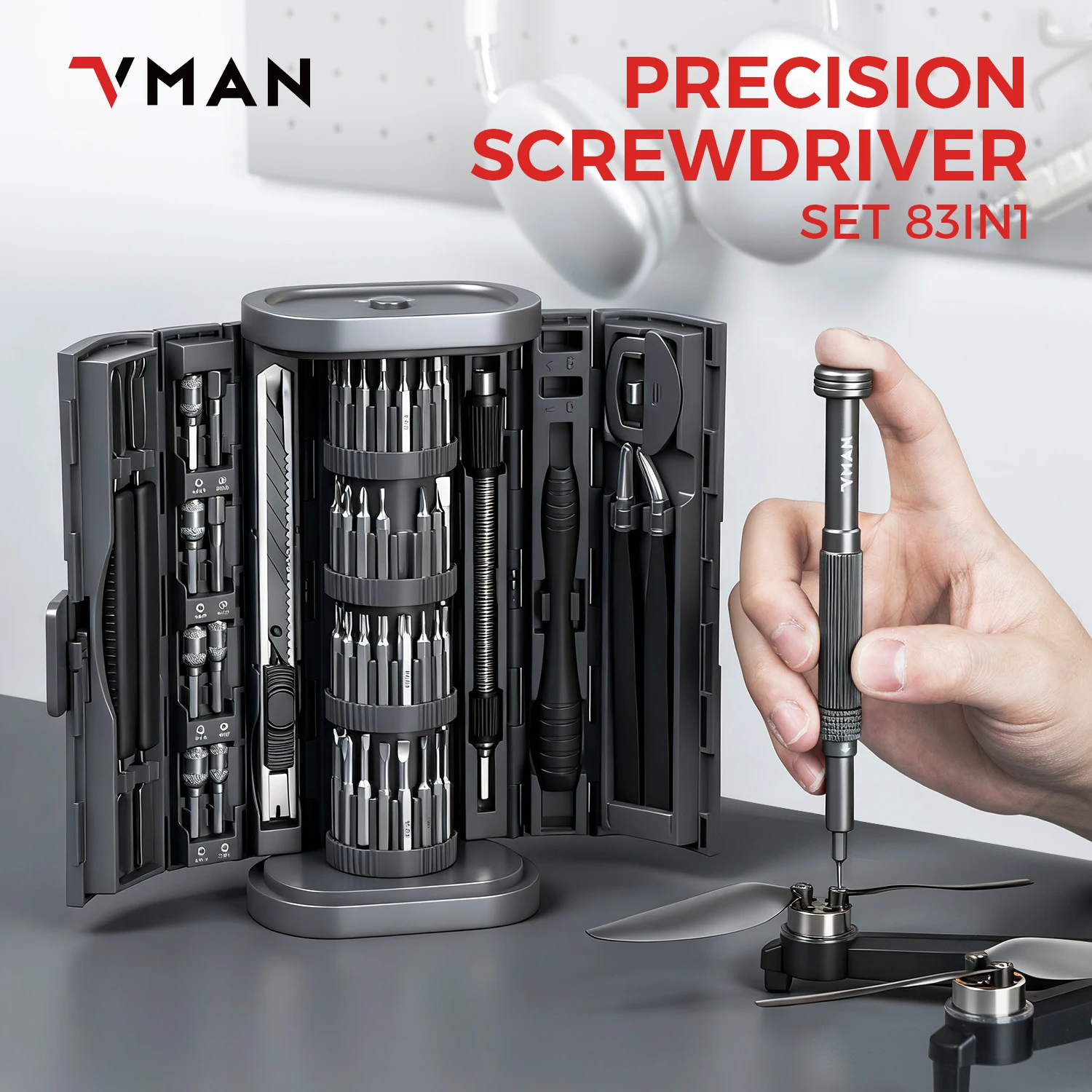 The VMAN 72-in-1 Precision Screwdriver Set is available in two versions: one with an electric handle and the other with a non-electric handle. Featuring CR-V steel bits, it is suitable for repairing various precision items ranging from digital products to small machinery, and serves as a powerful tool for professional precision repair and daily fine DIY work.