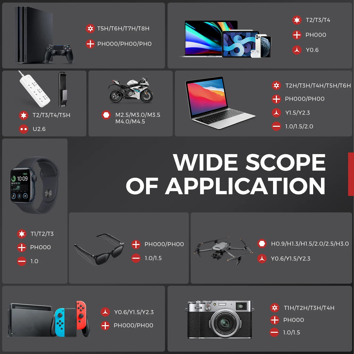 From digital devices such as mobile phones, tablets, and smart watches, to laptops, game consoles, drones, as well as precision items such as glasses and cameras, and even small precision motorcycle accessories, corresponding bits can be found for repair or assembly, meeting the diverse needs of different users such as families and professional precision repair personnel.