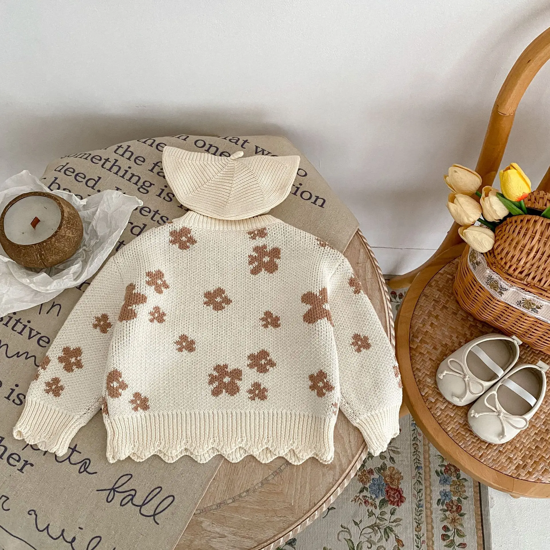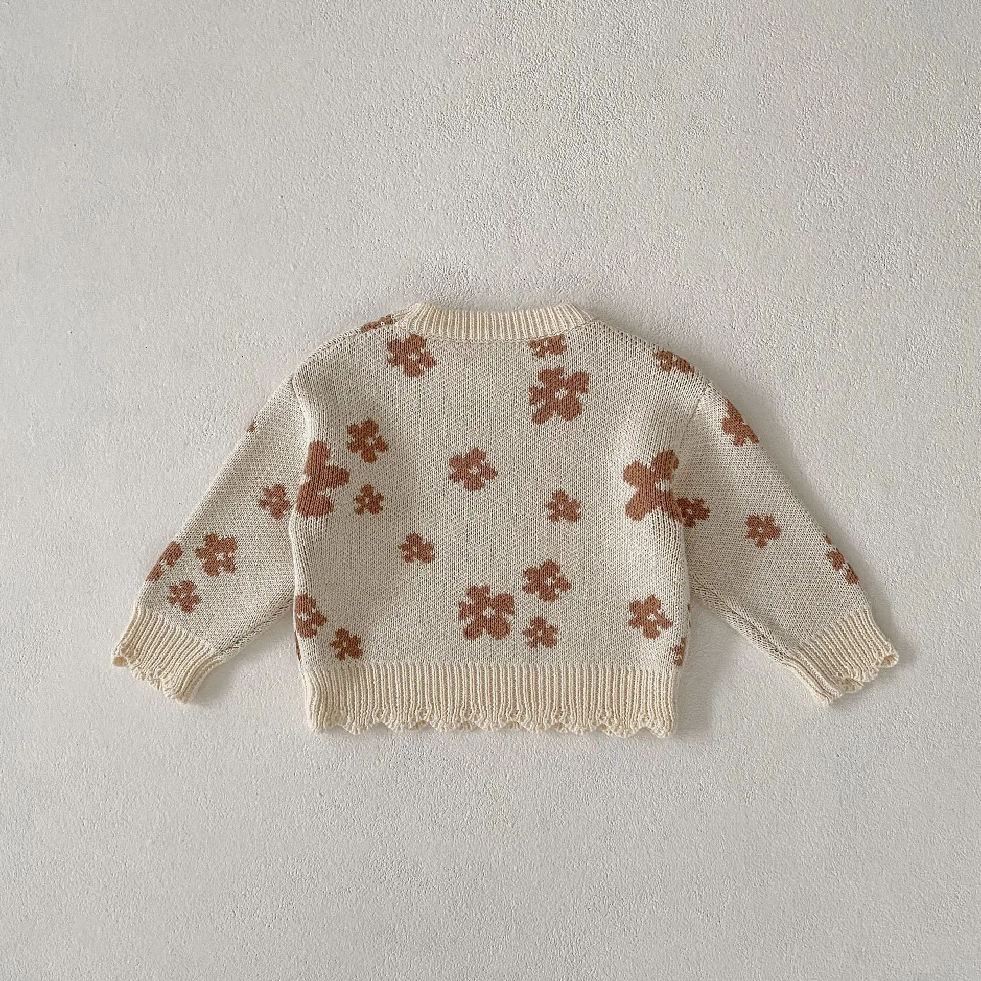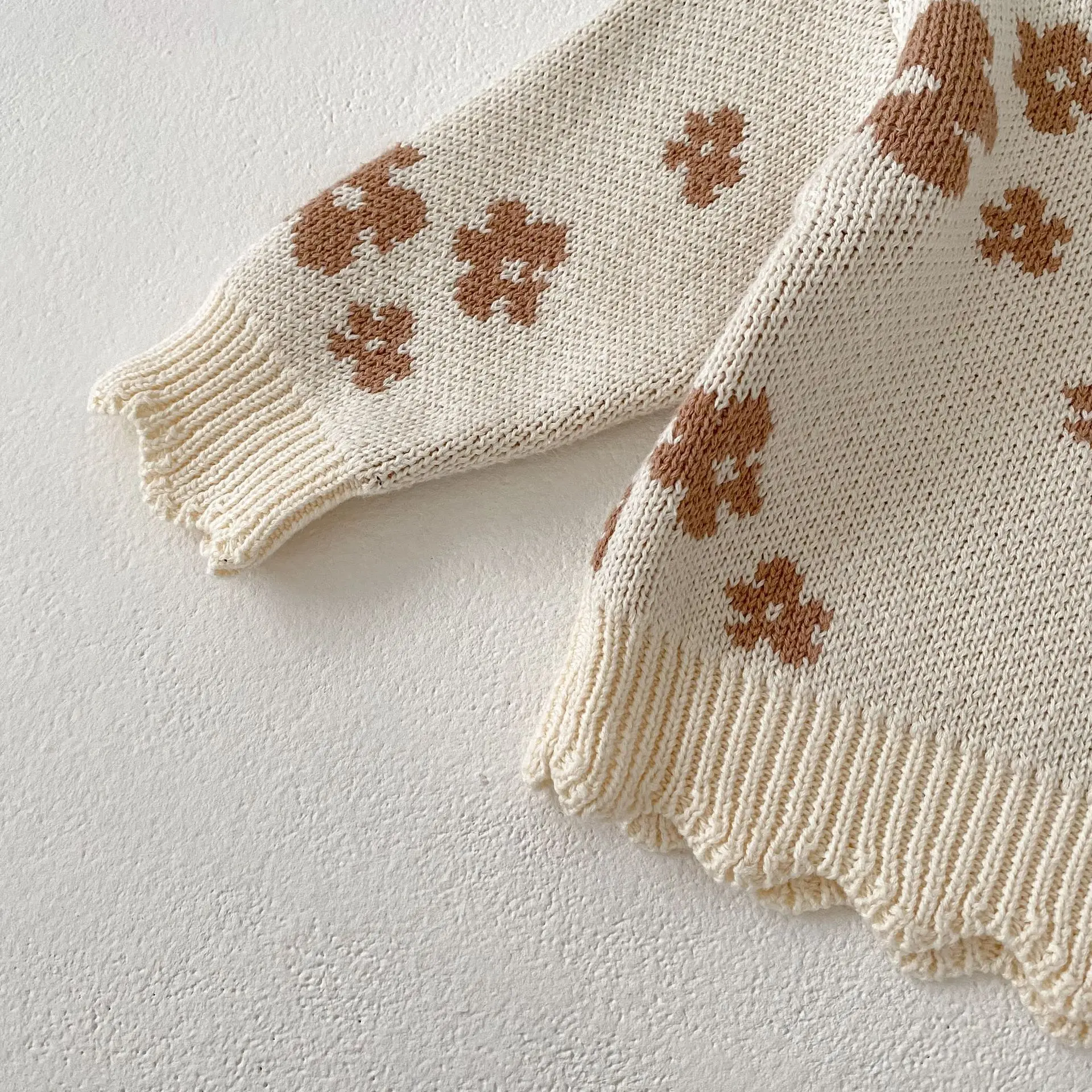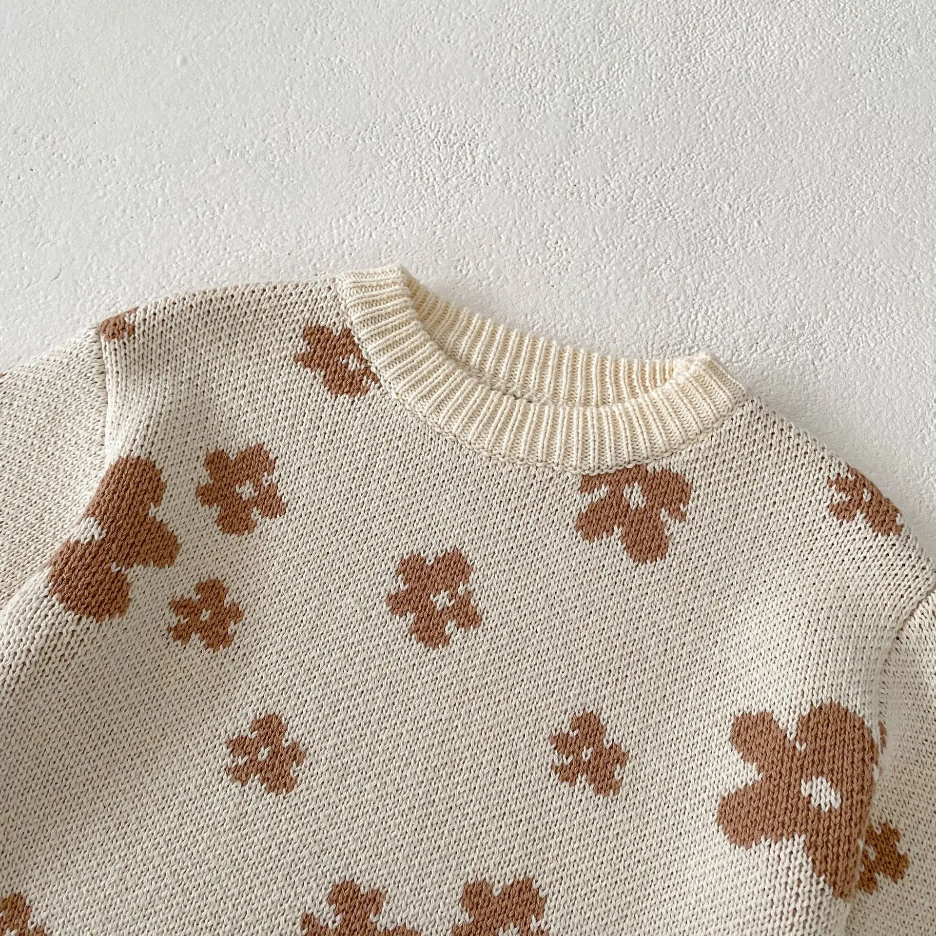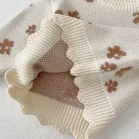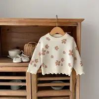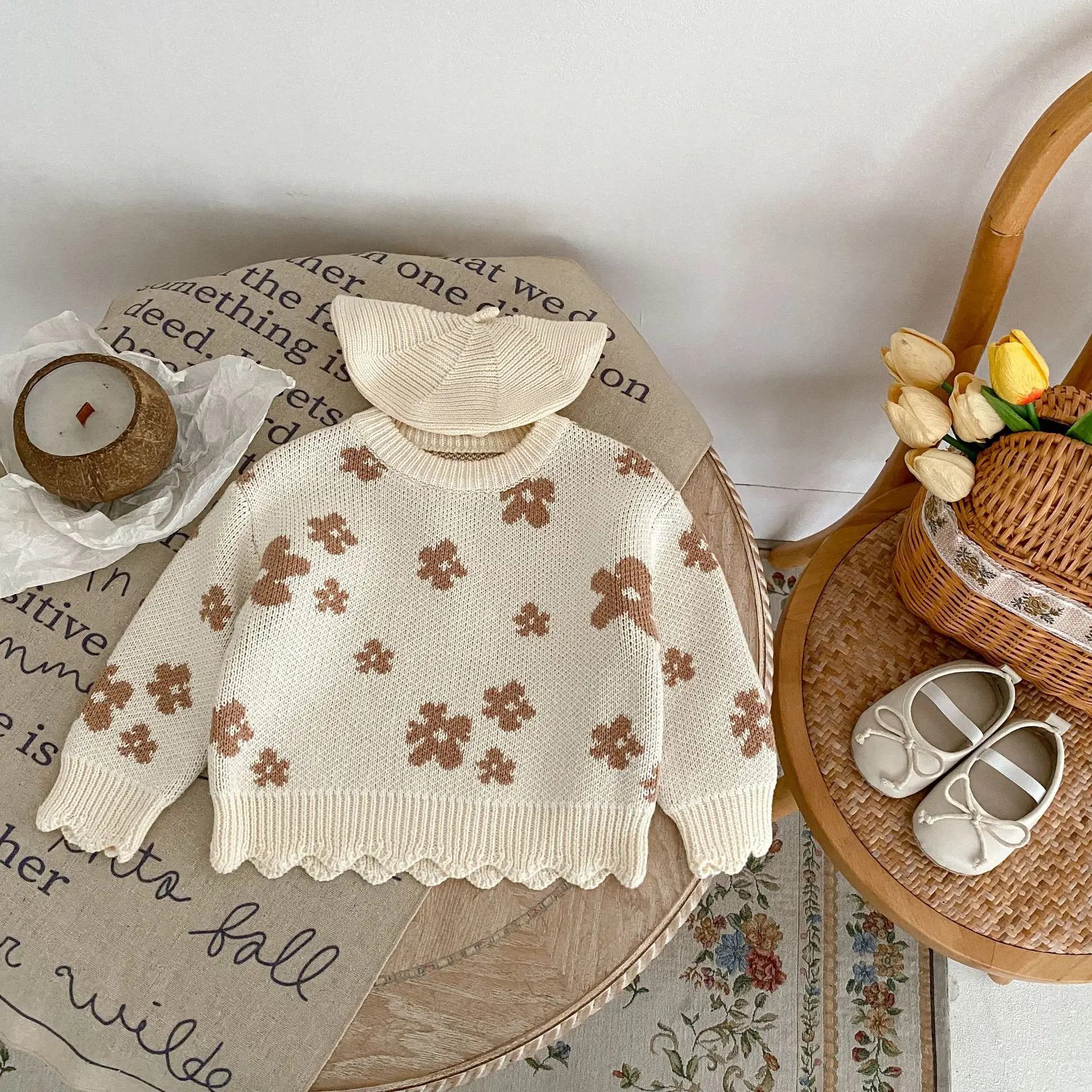 Autumn/Winter New Arrival Girls' Round Neck Floral Knit Sweater – Cozy Pullover Top for Toddlers and Kids