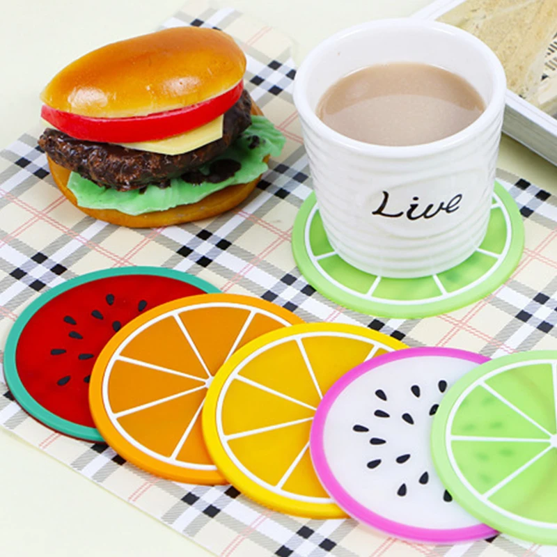 7PCS/set Fruit Shaped Coaster Silicone Dining Table Placemat Coasters Kitchen Cup Mat Mug Heat-resistant