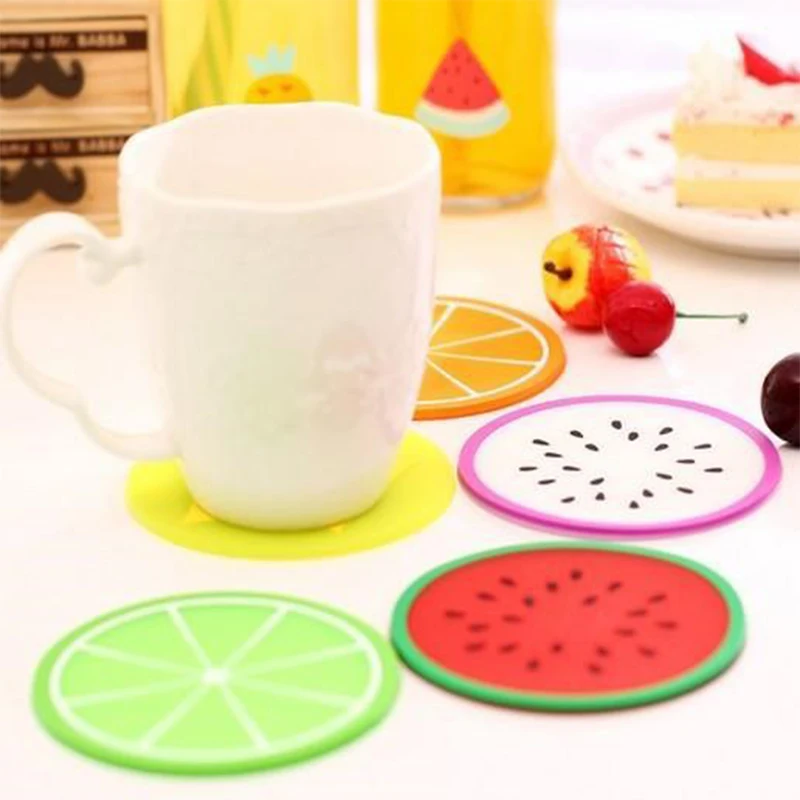 7PCS/set Fruit Shaped Coaster Silicone Dining Table Placemat Coasters Kitchen Cup  Mat Mug Heat-resistant Coffee Hot Drink Pad