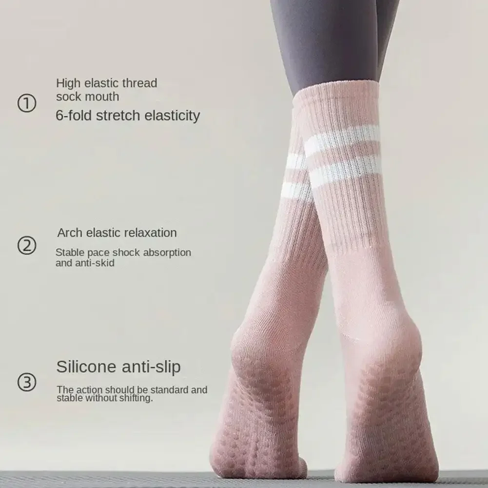 Professional Yoga Socks Women Cotton Sports Socks Silicone Non-slip Pilates Grip Towel Socks for Dance Barre Breathable Bandage