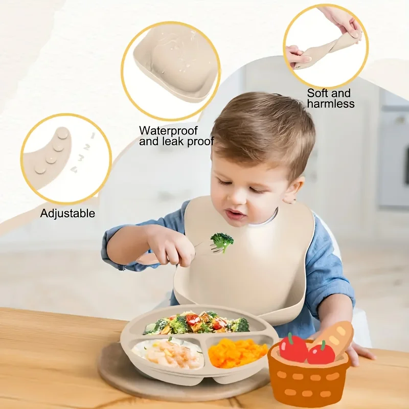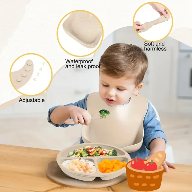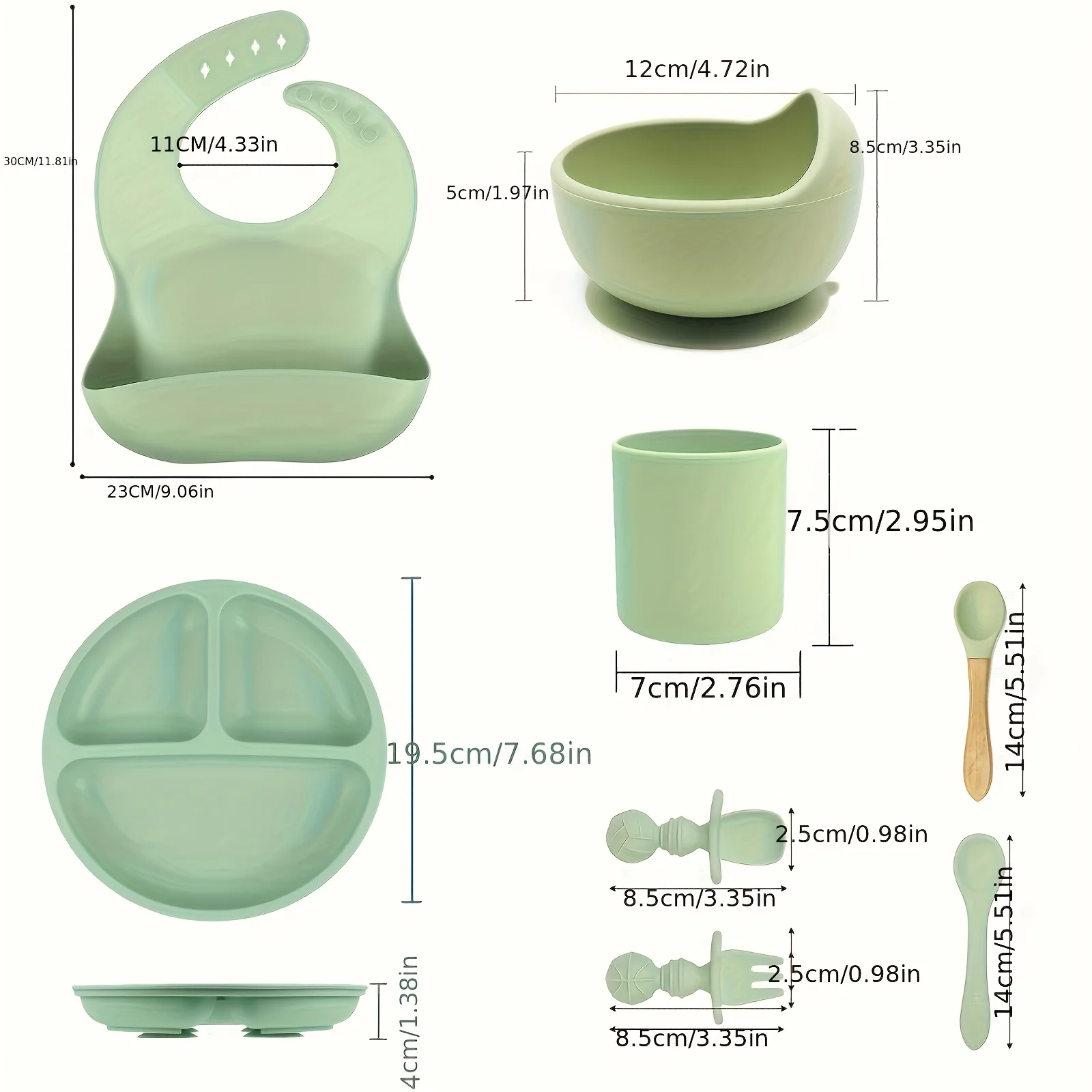 8-piece silicone feeding tableware set for mothers and infants, suitable for babies aged 0-3 years old