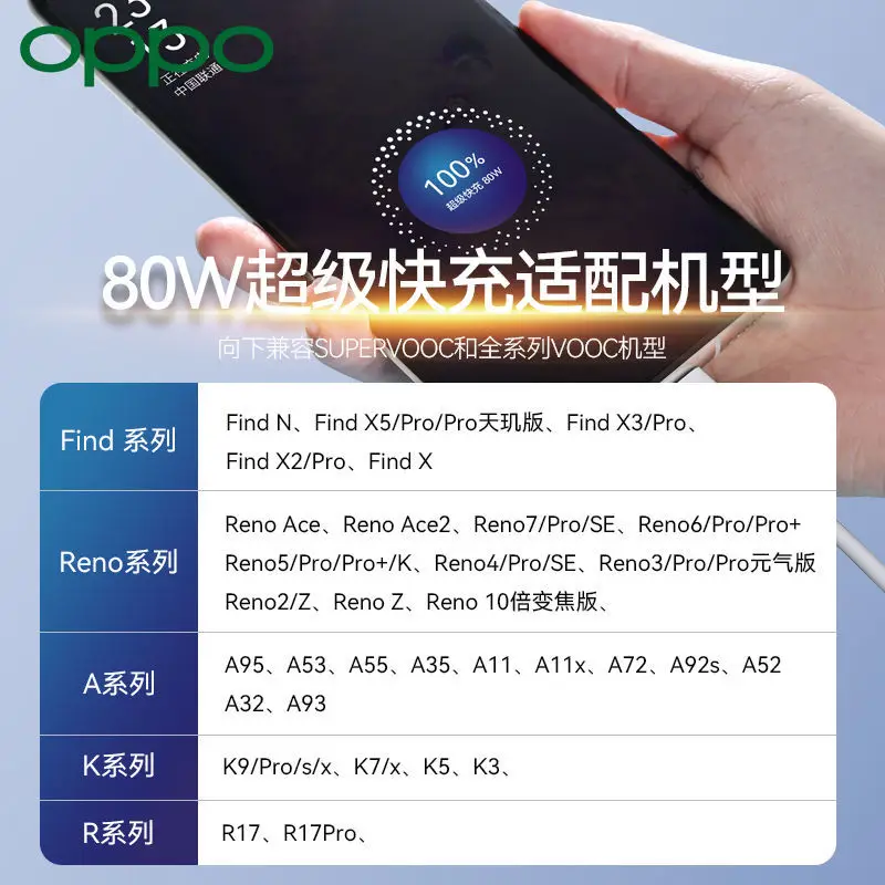80W Supervooc 2.0 Fast Charger EU Plug For OPPO Reno 9 8 6 Pro K10 K9 Pro Find X6 /X5/X3/X2 Pro Ace2 X20 R17 Realme GT Oneplus Warp Dash Charger