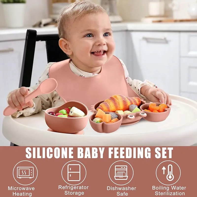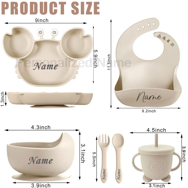 8Pcs Baby Feeding Set Children’s Crab Plate Bowl Straw Cup Set Free Personalized Name Logo Tableware