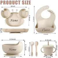 8Pcs Baby Feeding Set Children’s Crab Plate Bowl Straw Cup Set Free Personalized Name Logo Tableware For Kids Baby AccessoriesBPA Free Free Shipping
