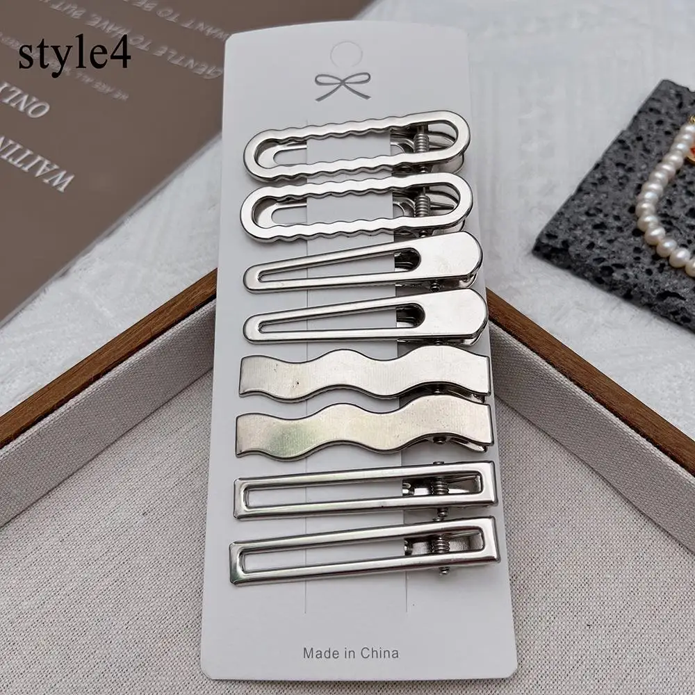 Alloy Hairpin Barrettes Hair Accessories 8pcs Metal Silver Hair Clips Geometry Bangs Side Clip Headwear Vintage Styling Tool