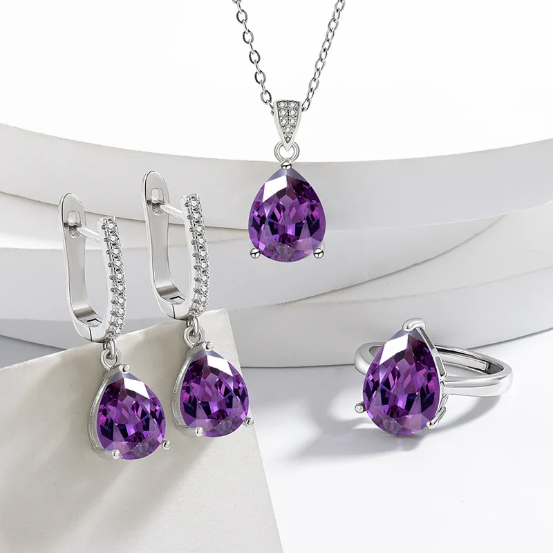 925 Silver Jewelry Sets Elegant Women's Ring Earrings Necklace Wedding Bridal Engagement Accessories