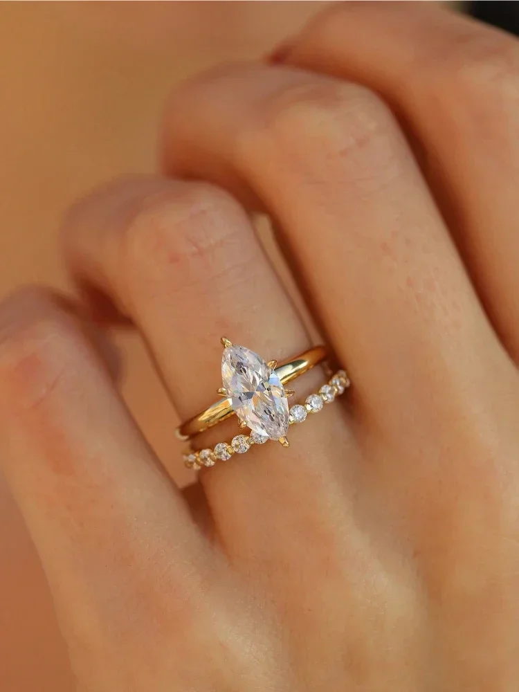 925 Sterling Silver Classic Golden Various Round Zircon Rings For Women Engagement Wedding Luxury High Quality Fine Jewelry