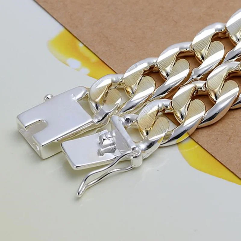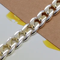 925 Sterling Silver Colorful 10 MM Sideways Cuban Chain Mens & Womens Wedding Bracelet Fashion Charm Birthday Gift