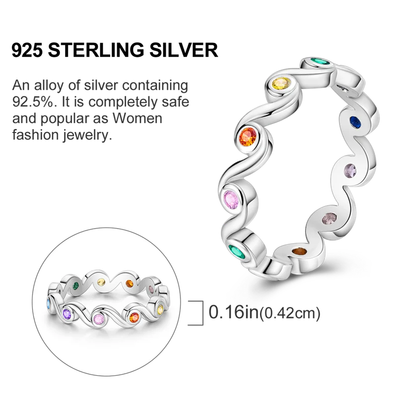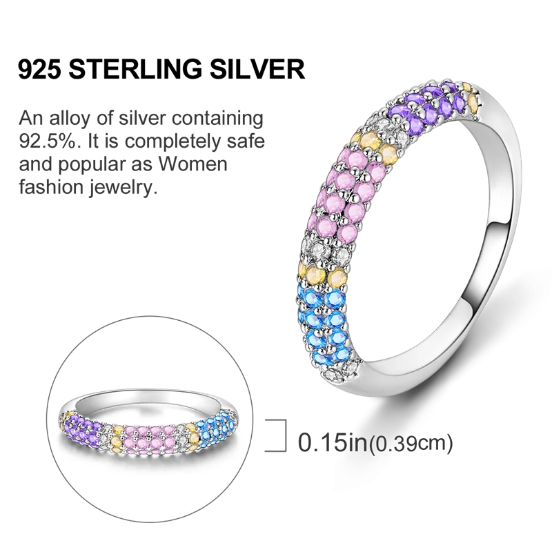925 Sterling Silver Colorful Rings Sparking Zirconium Ring Popular Wedding For Women DIY Jewelry Anniversary Friend Lover Gift