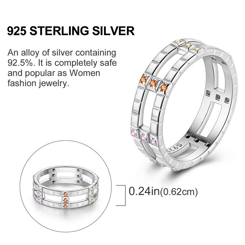 925 Sterling Silver Colorful Rings Sparking Zirconium Ring Popular Wedding For Women DIY Jewelry Anniversary
