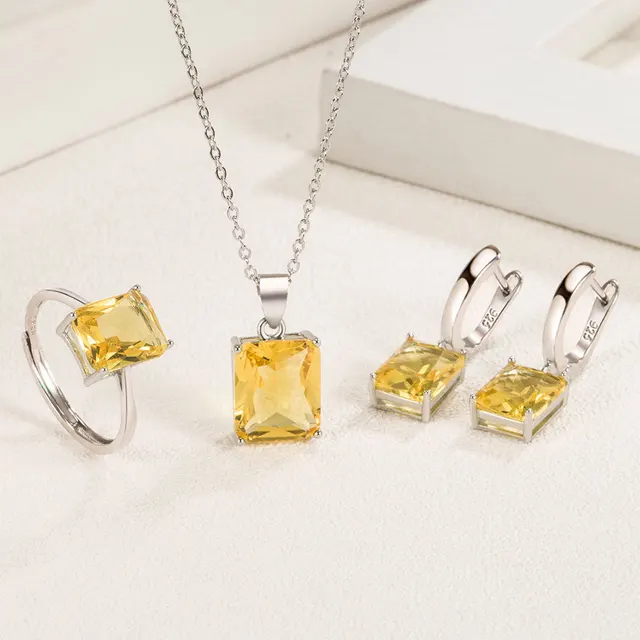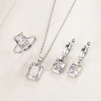 925 Sterling Silver Elegant Jewelry Sets Ring Earrings Necklace For Women Rectangle Geometry Zircon Wedding Accessories