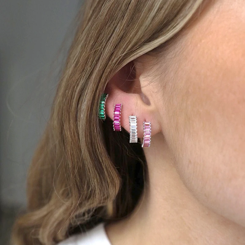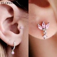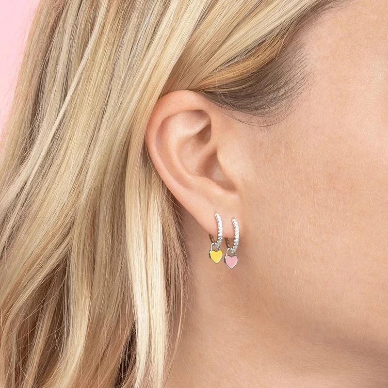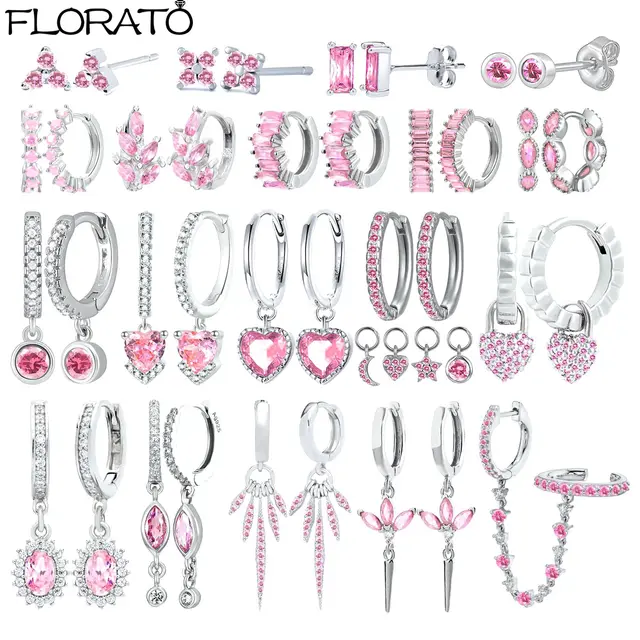 925 Sterling Silver Needle Cute Pink Crystal Pendant Earrings Sparkling Zircon Hoop Earrings for Women