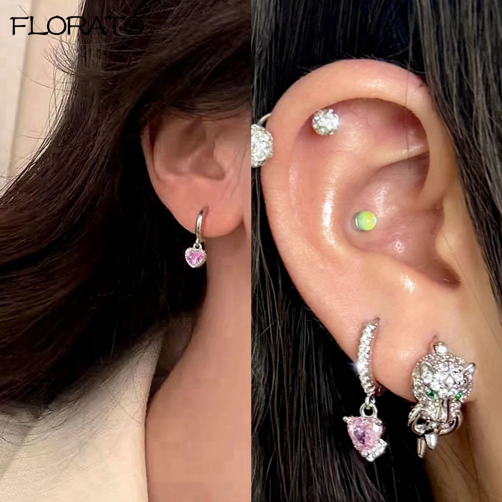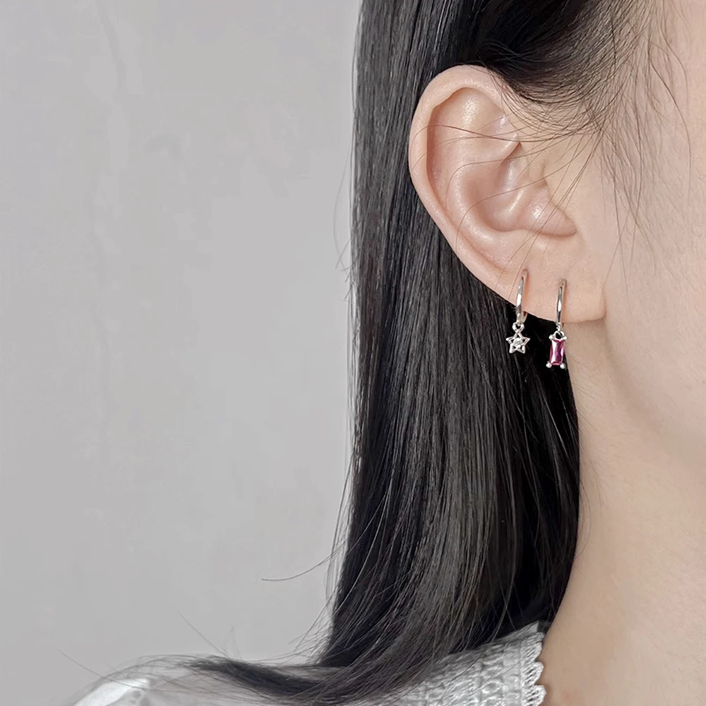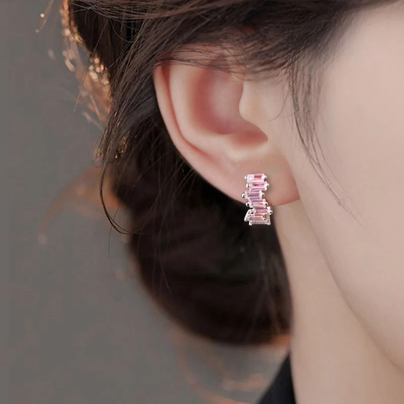 925 Sterling Silver Needle Cute Pink Crystal Pendant Earrings Sparkling Zircon Hoop Earrings for Women Fashion Piercing Jewelry