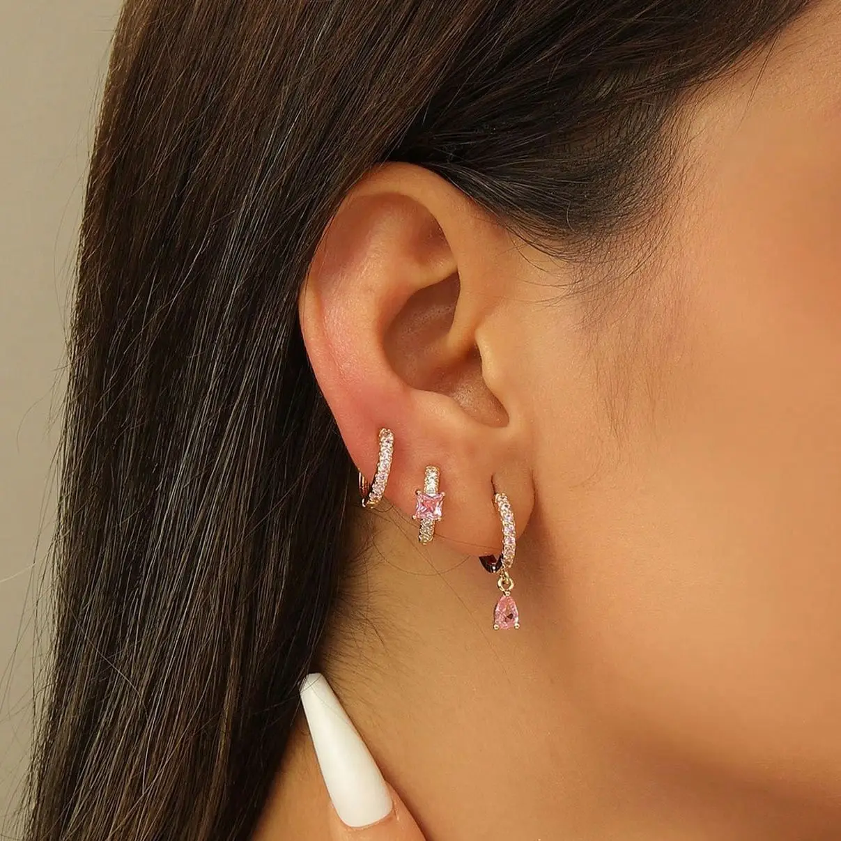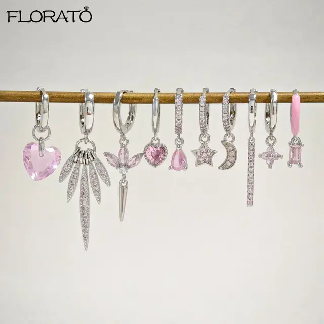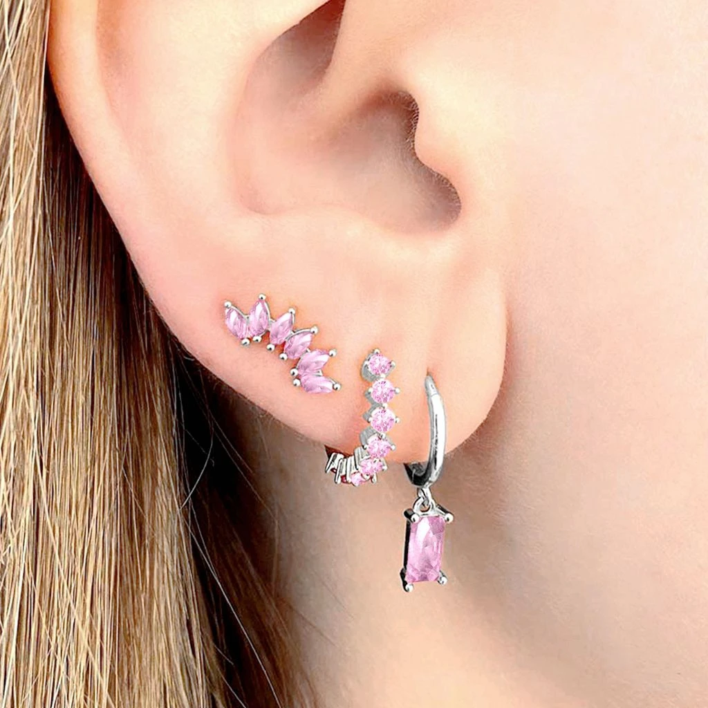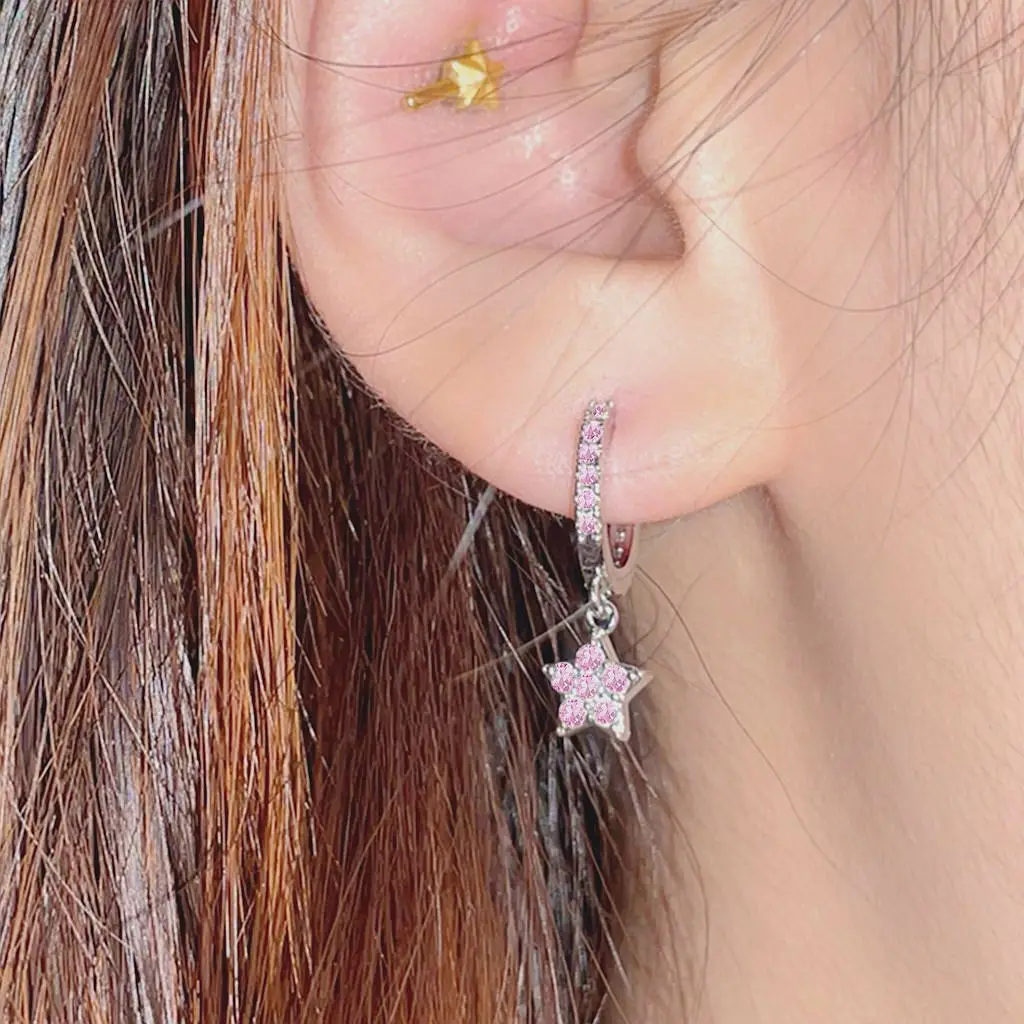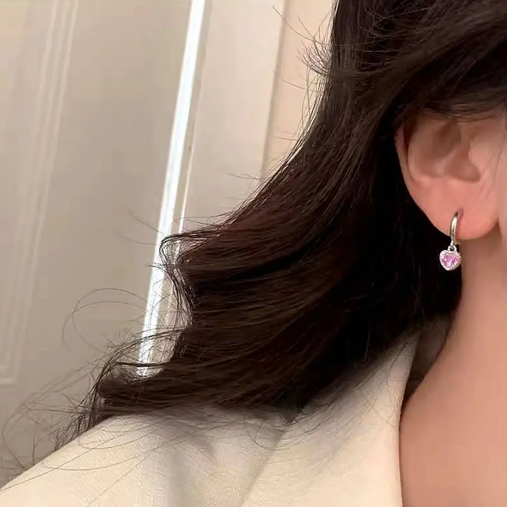 Be the first to review “925 Sterling Silver Needle Cute Pink Crystal Pendant Earrings Sparkling Zircon Hoop Earrings for Women”