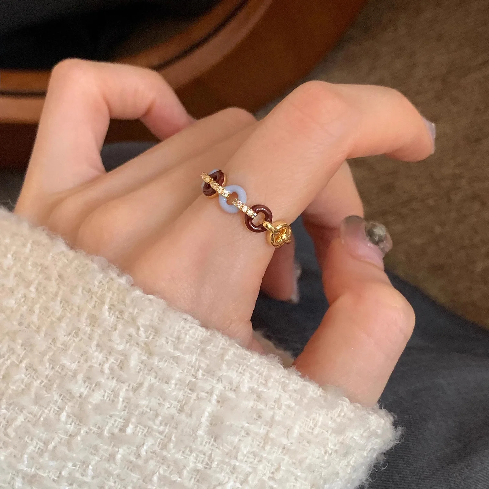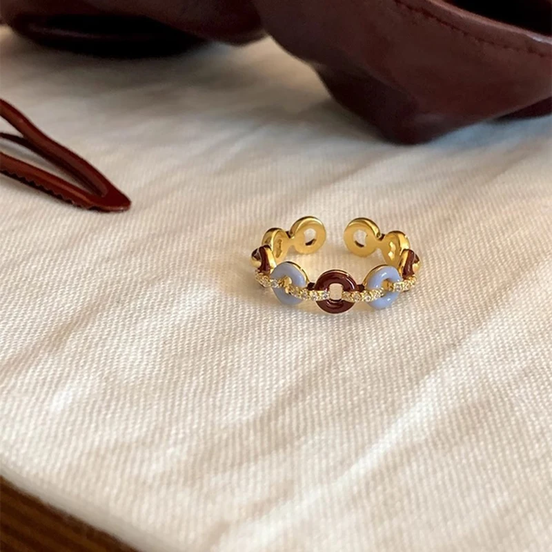 925 Sterling Silver Open Finger Ring Golden Enamel Donut Dazzling Geometric Punk For Women Jewelry Gift