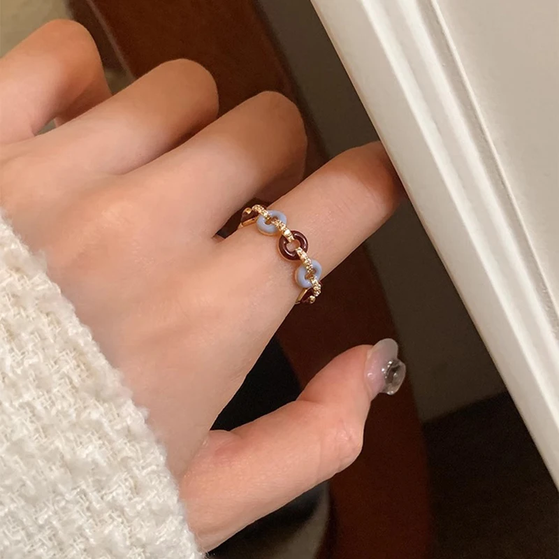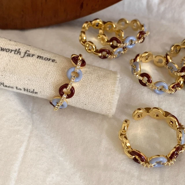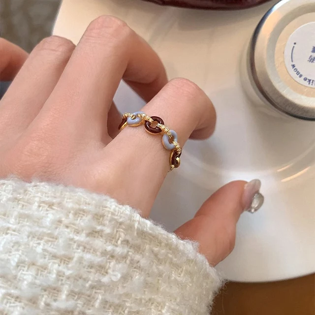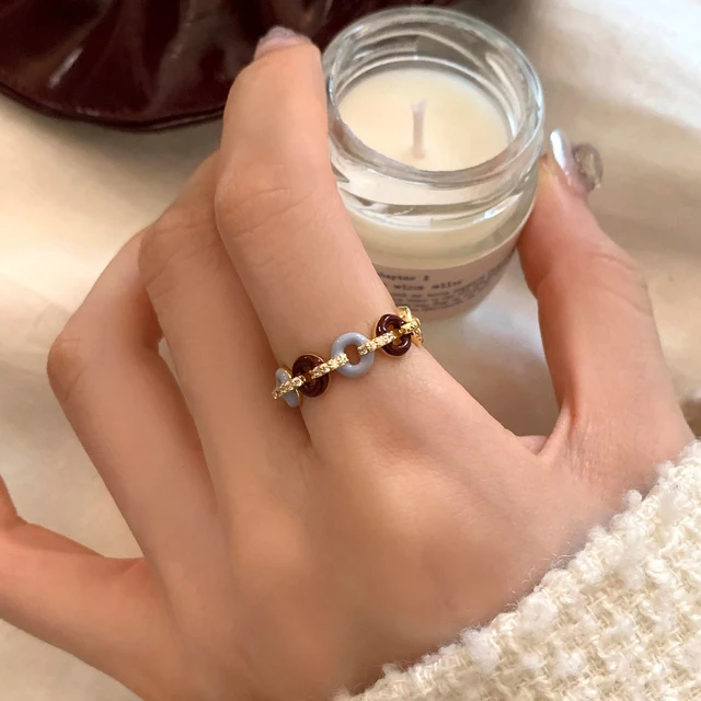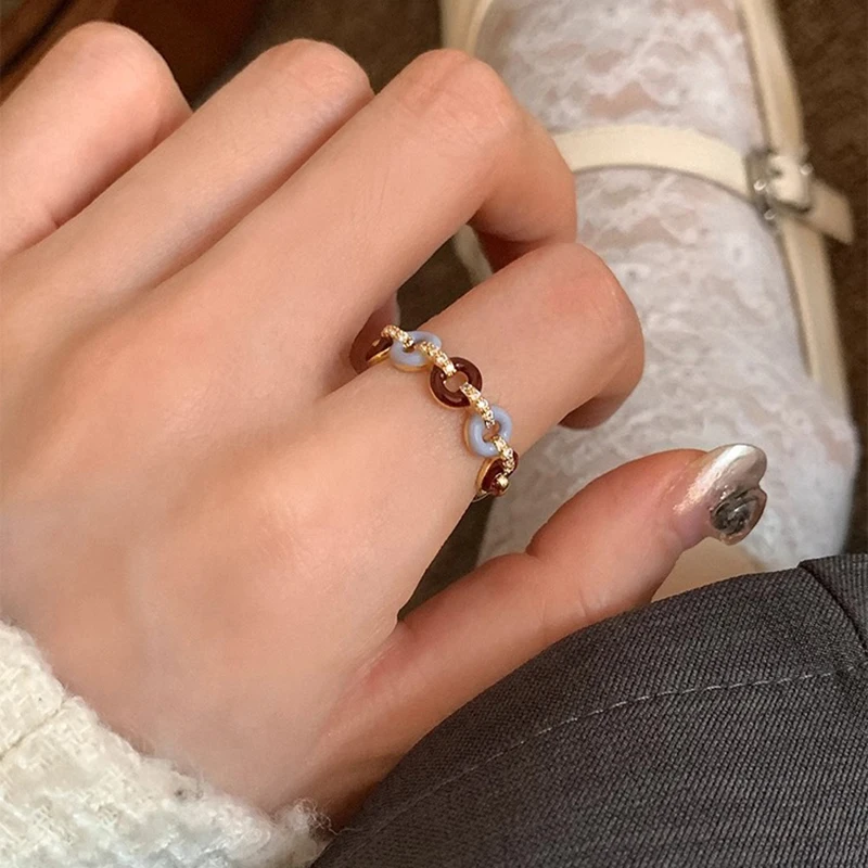 925 Sterling Silver Open Finger Ring Golden Enamel Donut Dazzling Geometric Punk For Women Jewelry Gift Dropship Wholesale