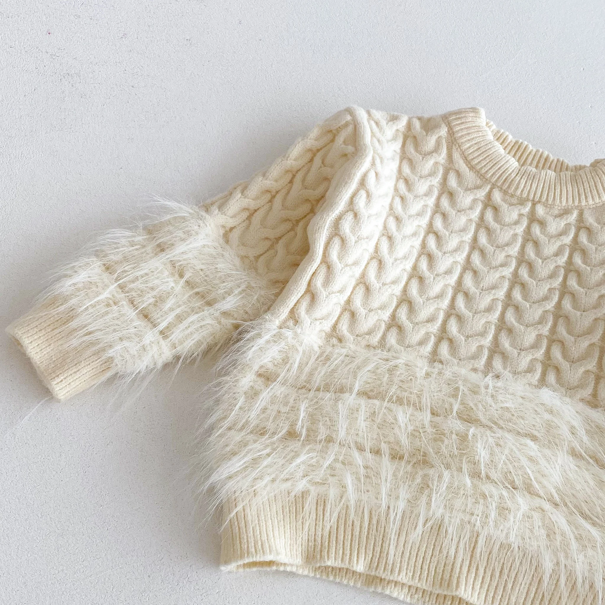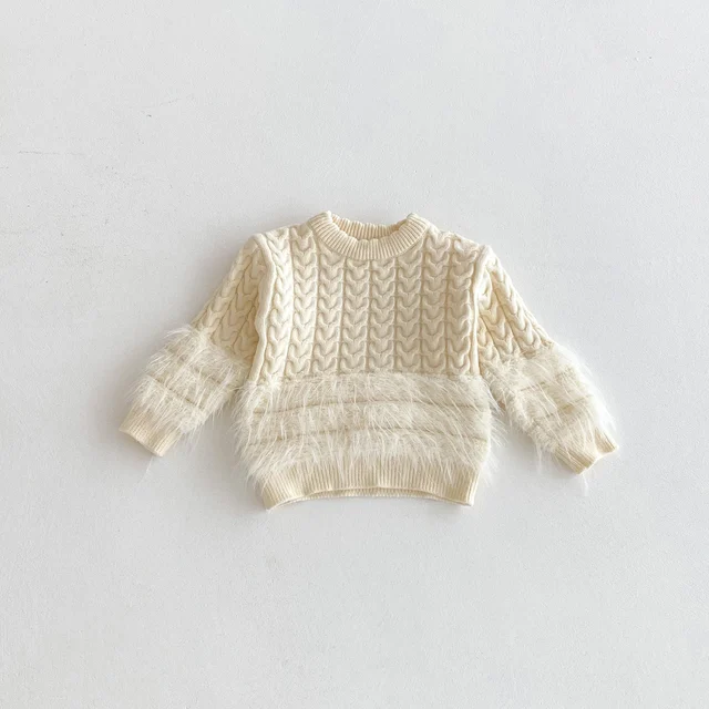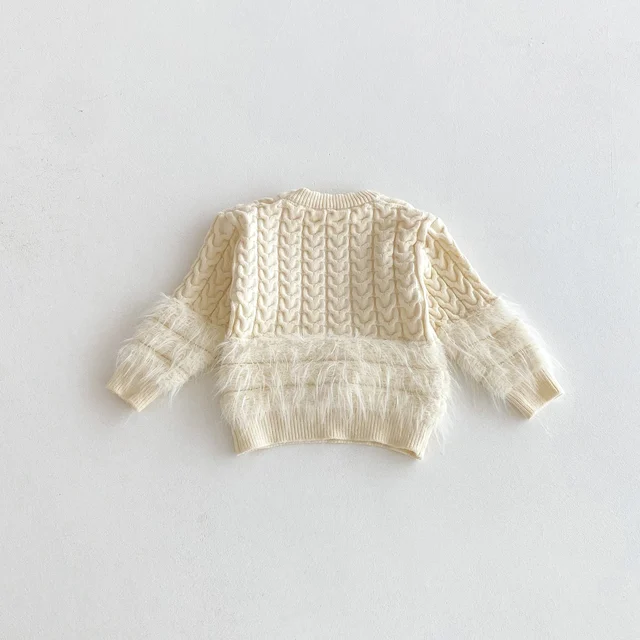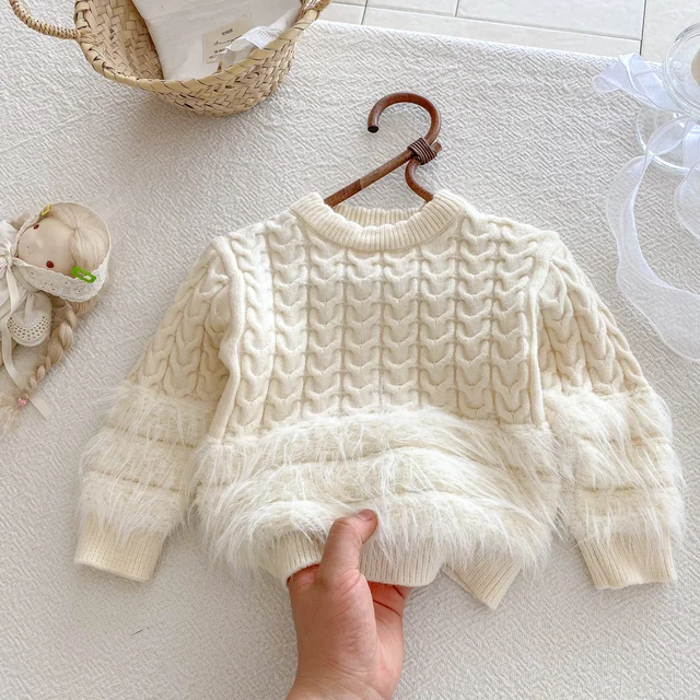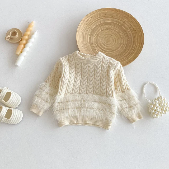 A plain round-neck knitted sweater for baby girls in autumn and winter, a casual top for princess fur