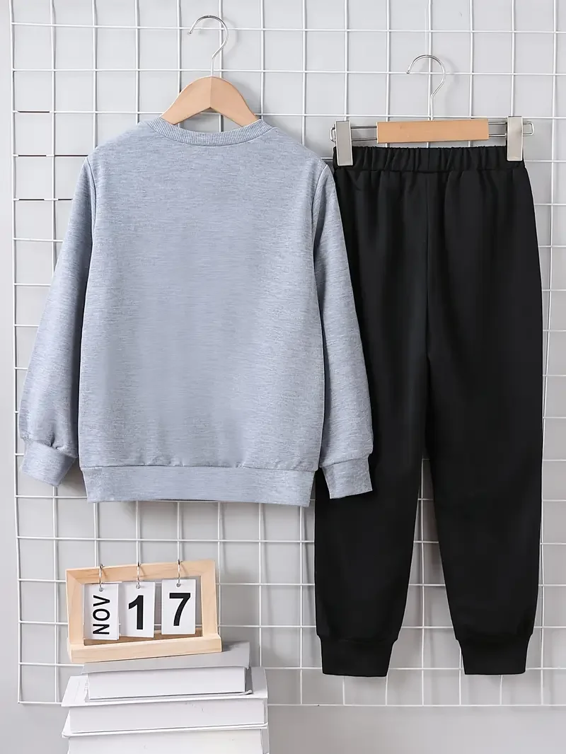 A Two-Piece Casual And Fashionable Boys’ Round-Neck Sweatshirt And Sweatpants Set