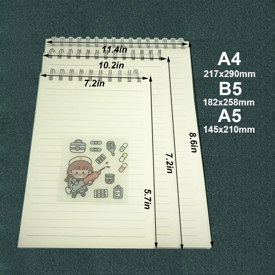 A4 B5 A5 Thickened Coil Notebook Flipped Up 120 Sheets/240 Pages Line Notebook Notepad School Office