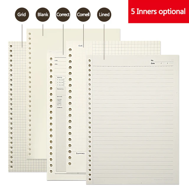 A4 B5 A5 A6 A7 Line Loose Leaf Notebook Refill Spiral Binder Inner Page Grid Diary Agenda Planner Paper Cover School Stationery