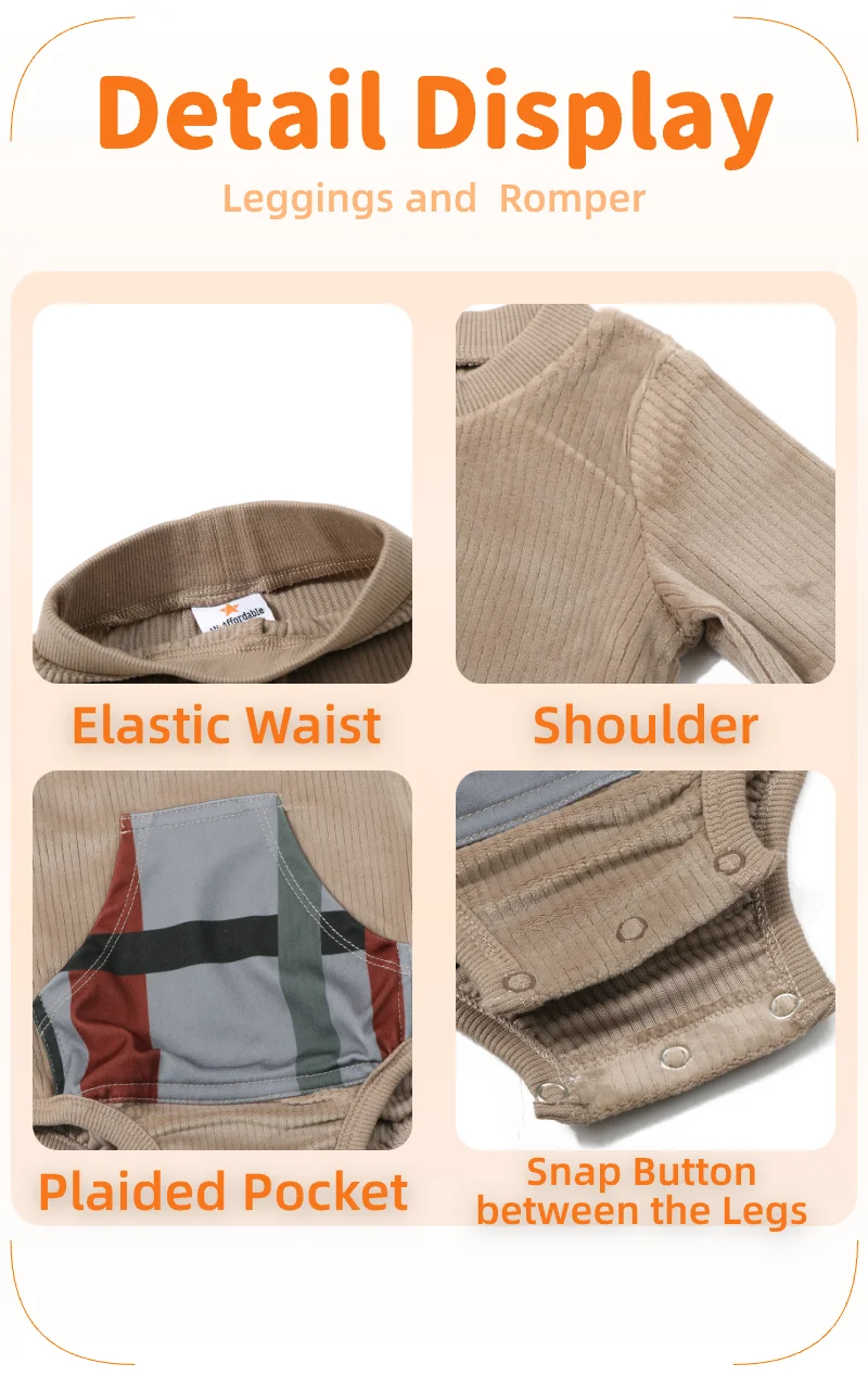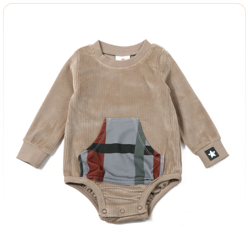 AA-Corduroy family matching set girls plaid pocket huge kangaroo boy shirt and leggings baby romper autumn