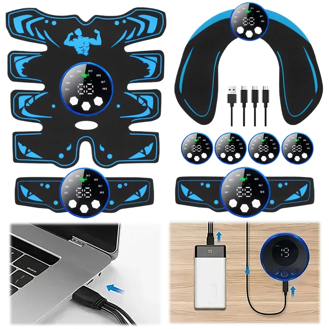 | Electronic Muscle Stimulator Fitness Strength Training Workout Equipment ABS Stimulator Muscle Toner Ab Machine Massager Trainer for Abdomen/Arm/Leg Features: 1.EMS Technology: Our ab stimulator uses precise micro-pulse to mimic muscle contraction for effective fat burning and body shaping. Suitable for various body parts like abdomen, waist, arms, shoulders, back, buttocks, thighs, and calves. 2.Portable EMS Muscle Stimulator: The ab toning belt trainer is lightweight and thin, easy to carry around, perfect for reading, watching movies, doing housework, or during work and leisure travel. Provides convenient muscle training without extra effort. 3.Efficient Fat Burning: Equipped with an LED display, our electronic muscle stimulator offers 8 modes and 29 intensity levels. Choose your preferred mode and intensity to achieve ideal muscle training results. 20 minutes per session, 1-2 times a day for six weeks. 4.Safe to Use: Our abs stimulator muscle toner uses smart micro-electronics technology to ensure safe and effective use. Gel electrodes are made from high viscosity, low allergenic gel, sturdy, harmless, and odorless. USB rechargeable, fully charges in an hour with a two-week battery life. 5.Versatile Usage: The ab machine massager trainer is designed for a variety of body parts, promoting muscle growth and fat reduction efficiently. With its compact design, it’s ideal for home use or on-the-go fitness regimes. Specification: Note: