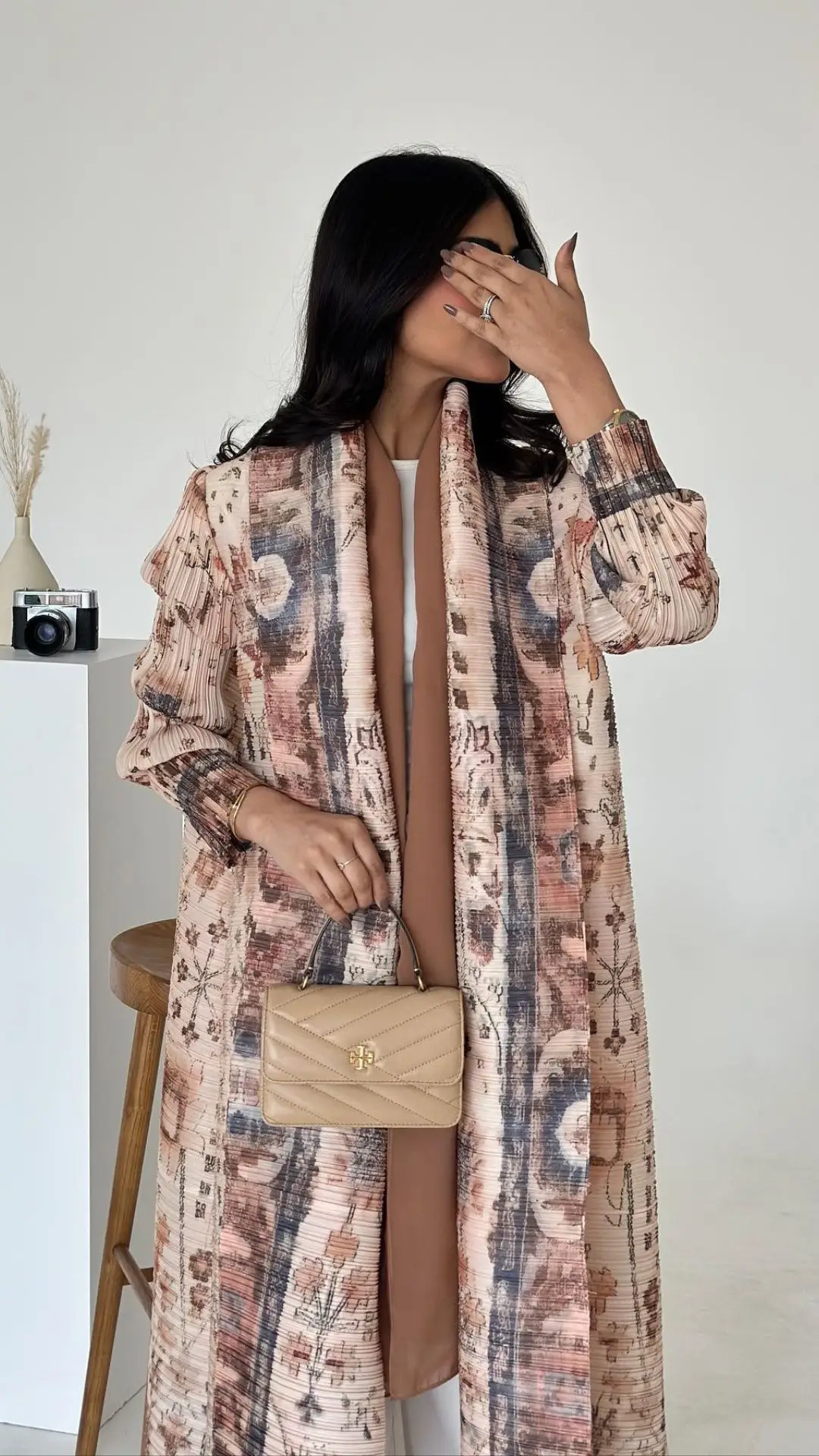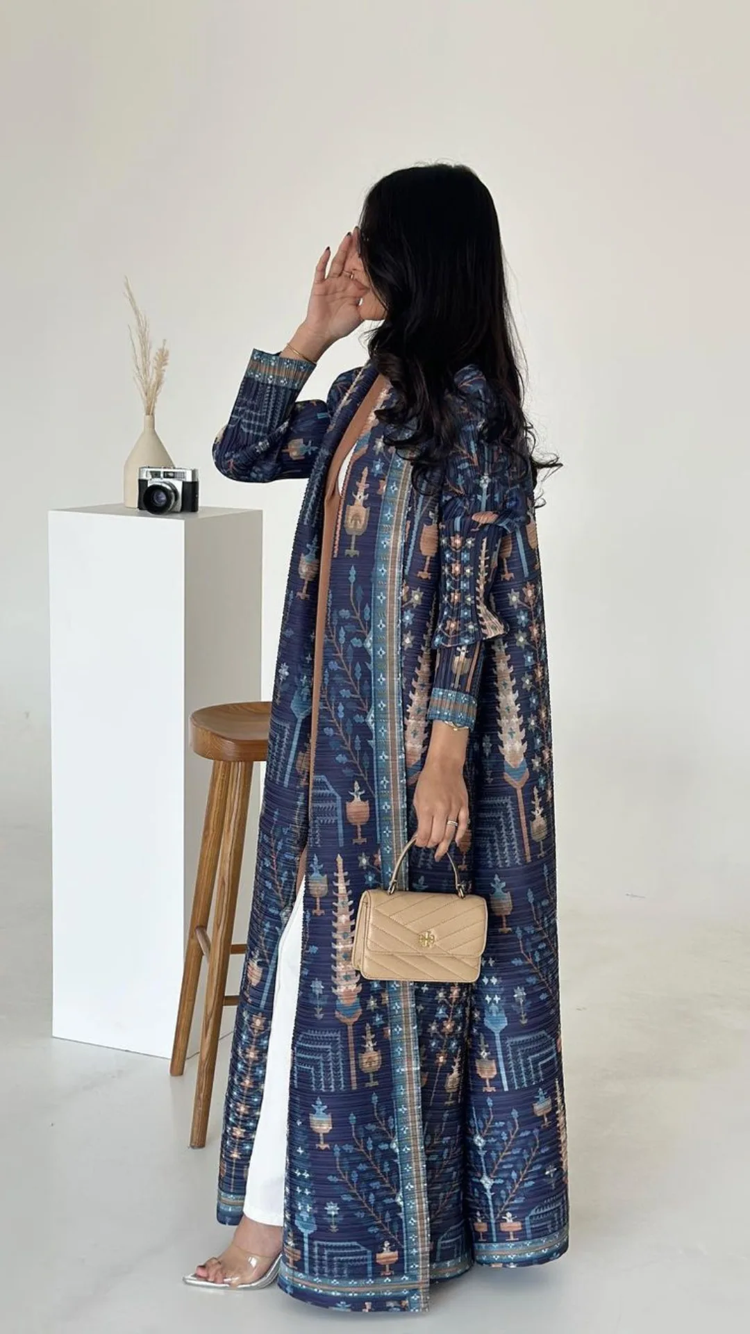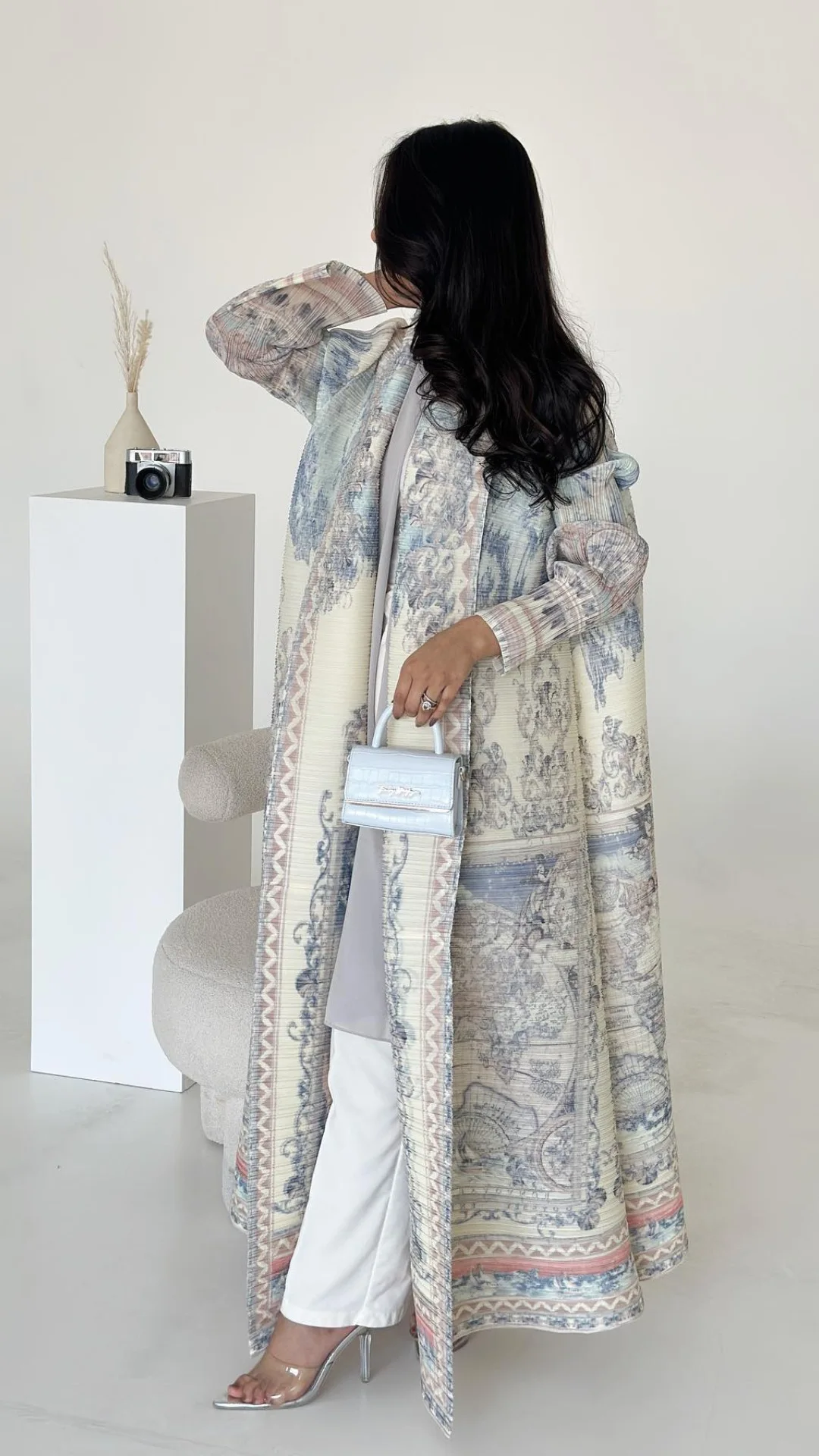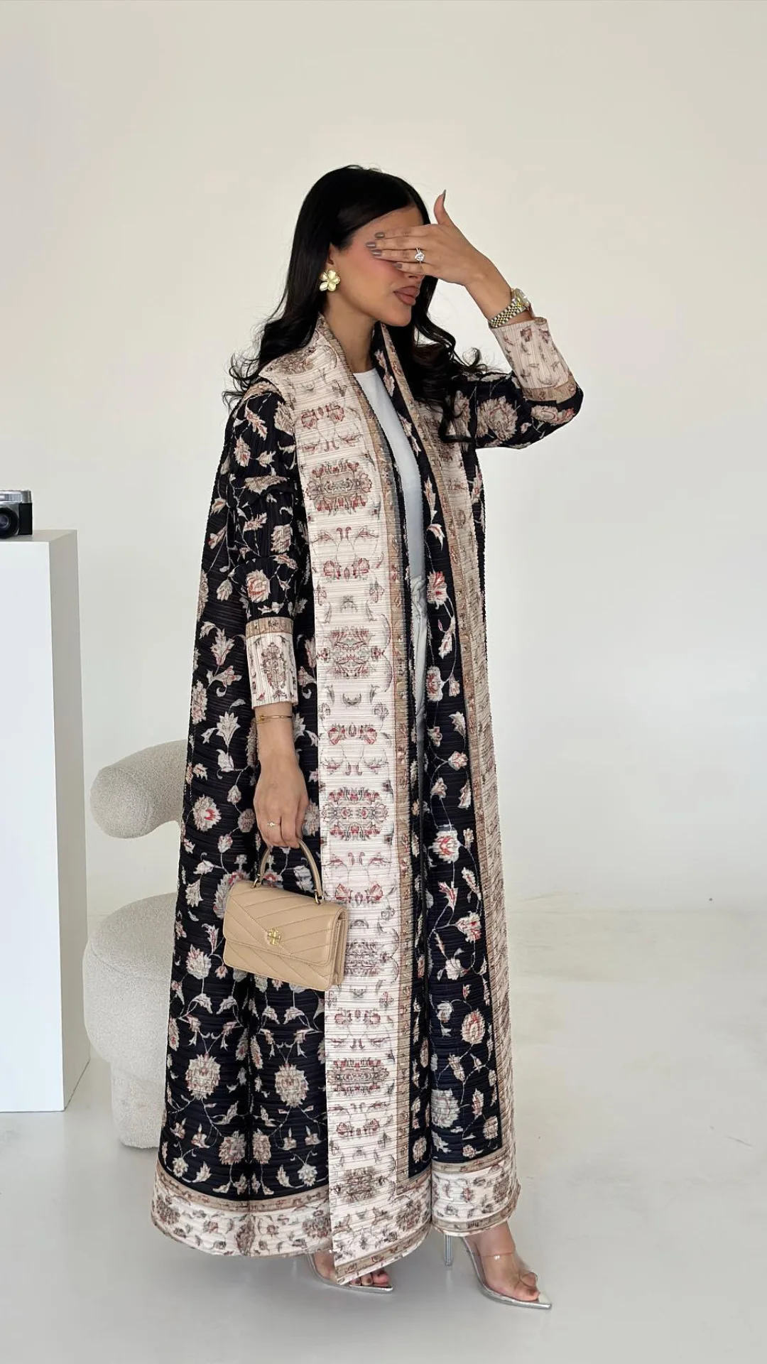 Abaya Miyake Pleated Printed Robe Jacket Arabian Dubai Style Women’s Long Sleeve Conservative Demure