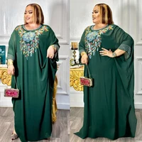 African Dresses for 2025 Elegant Diamonds Women Abaya Dashiki Ankara Boubou Plus Size Dress Belted Kaftan Gown Africa Clothing