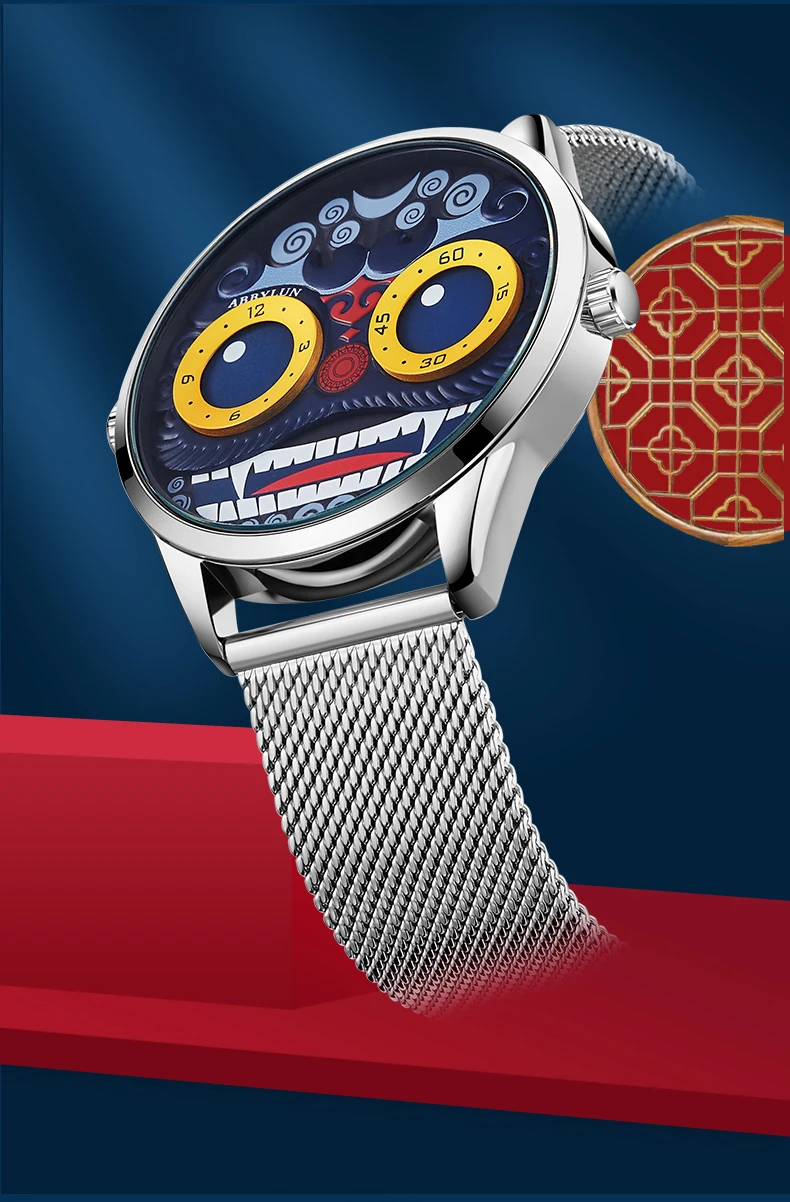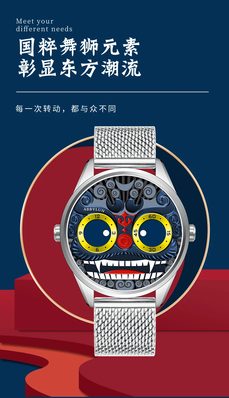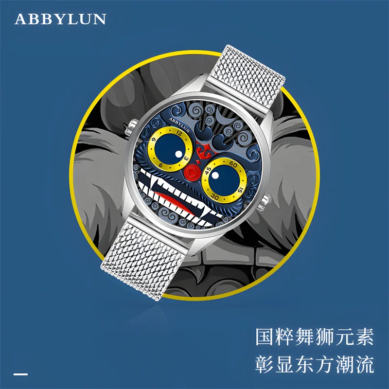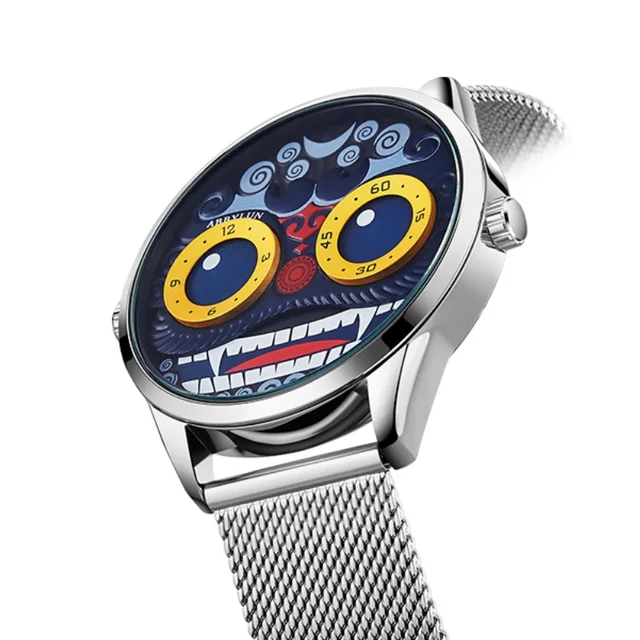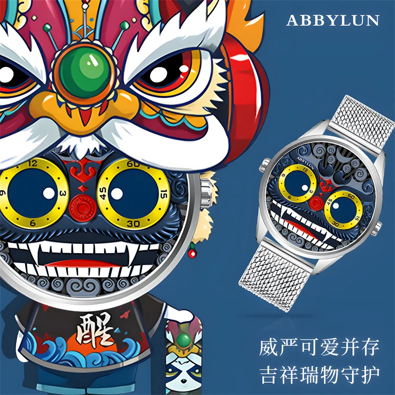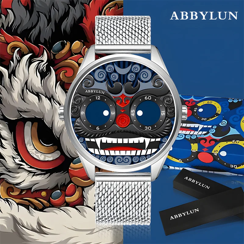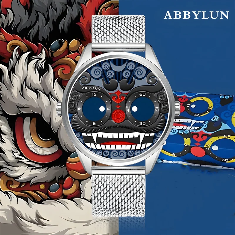 Abbylun 1363 Creative Lion Personality 3D Joker Personality Design Clock Leather And Mesh Strap Wrist