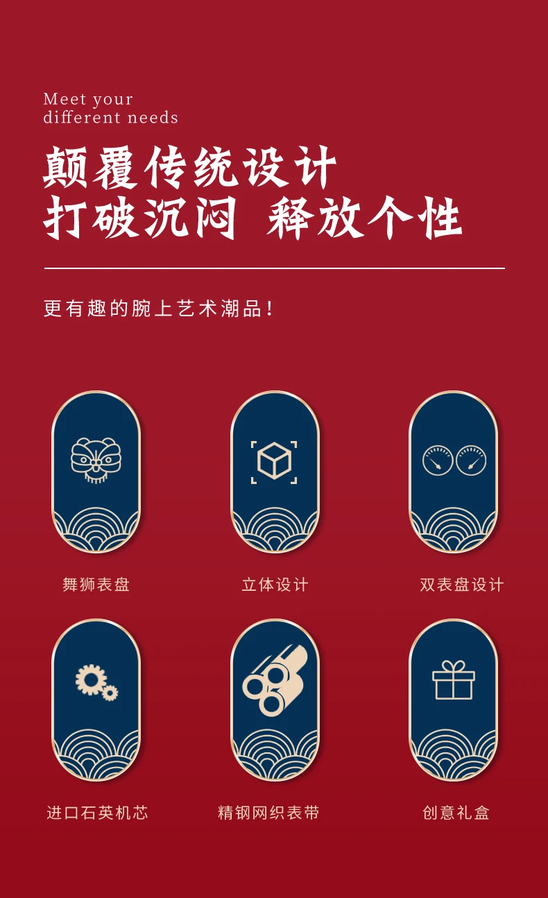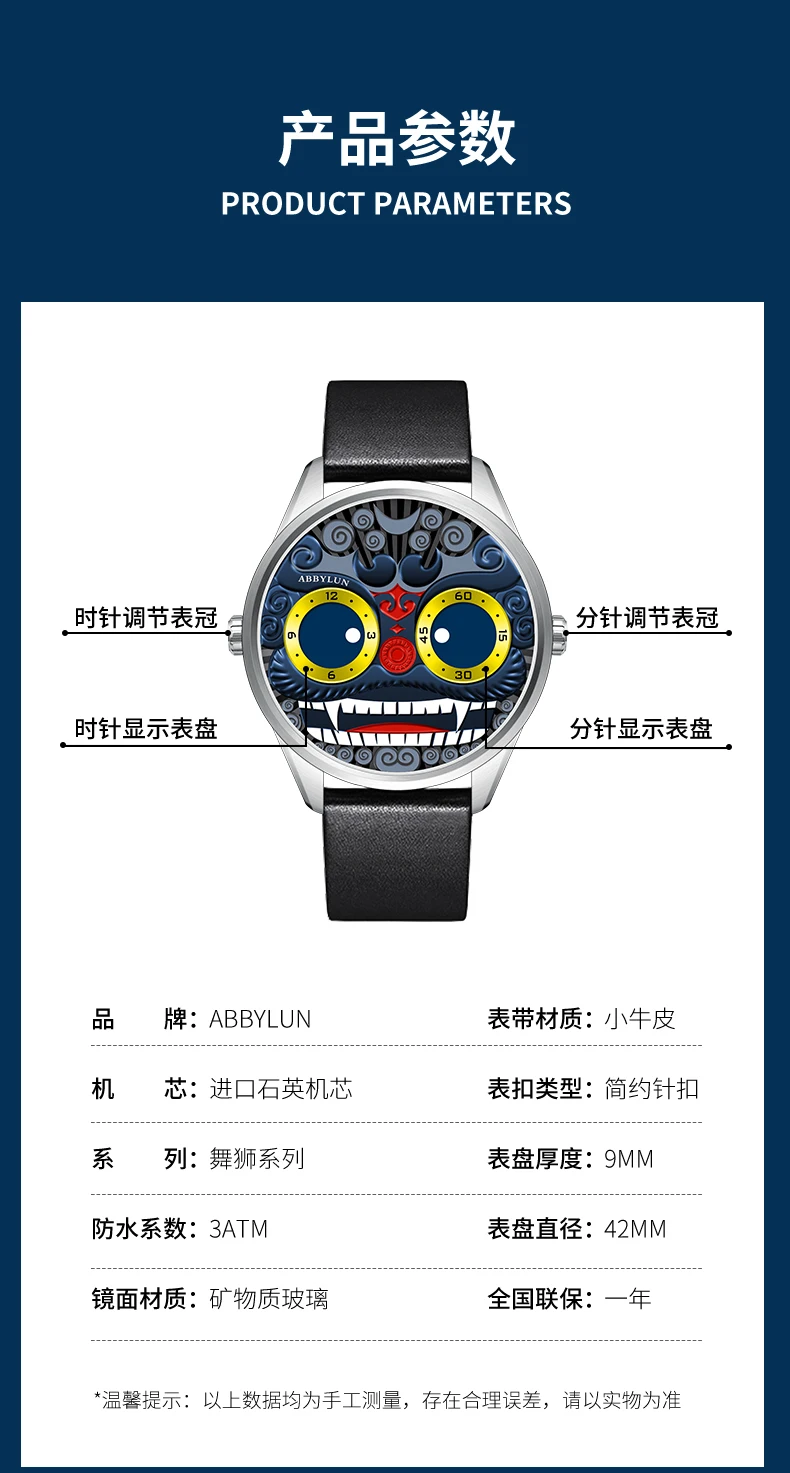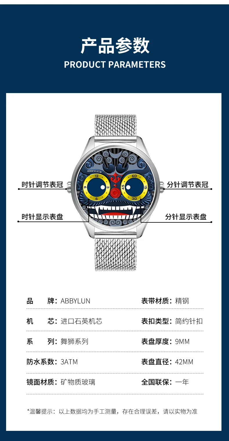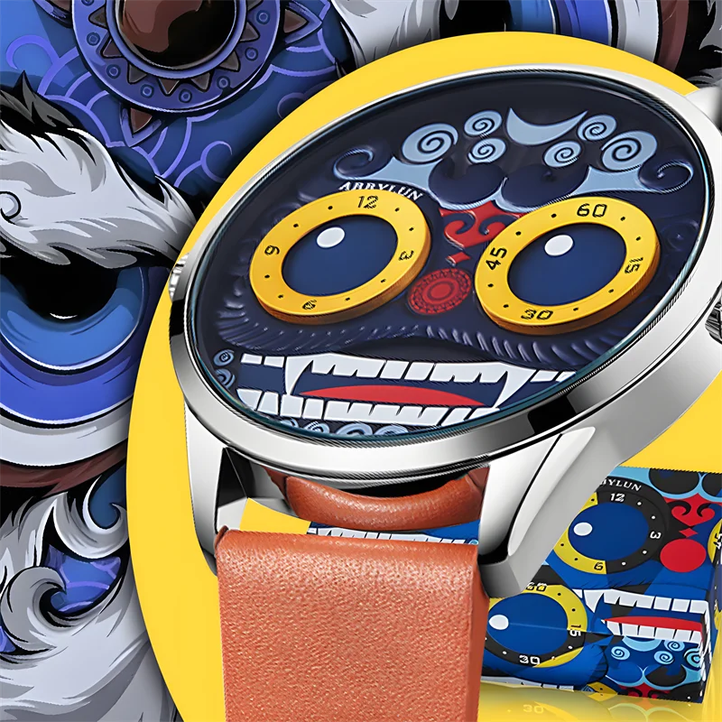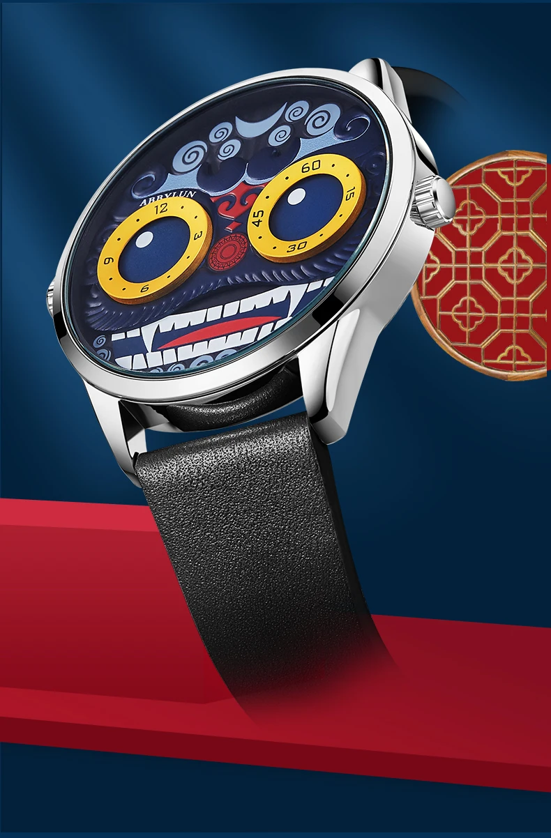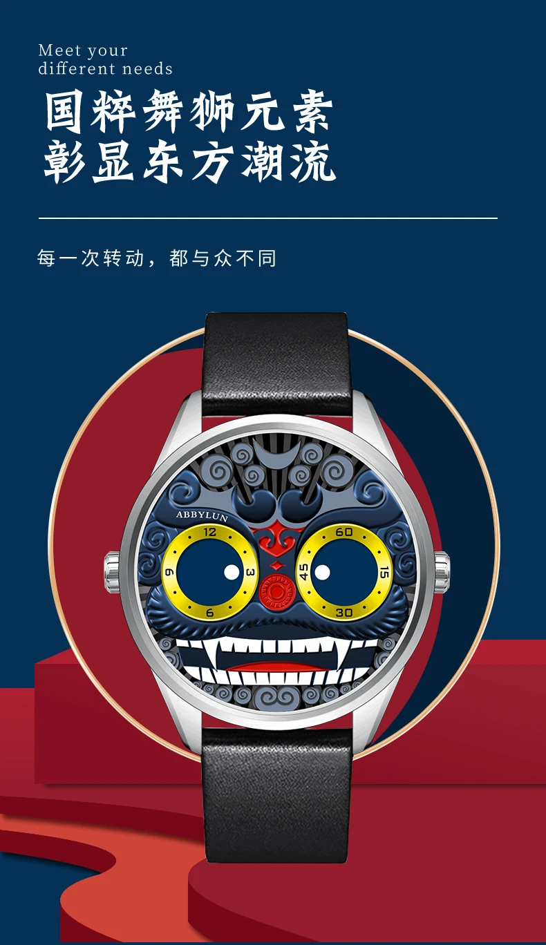 Abbylun 1363 Creative Lion Personality 3D Joker Personality Design Clock Leather And Mesh Strap Wrist